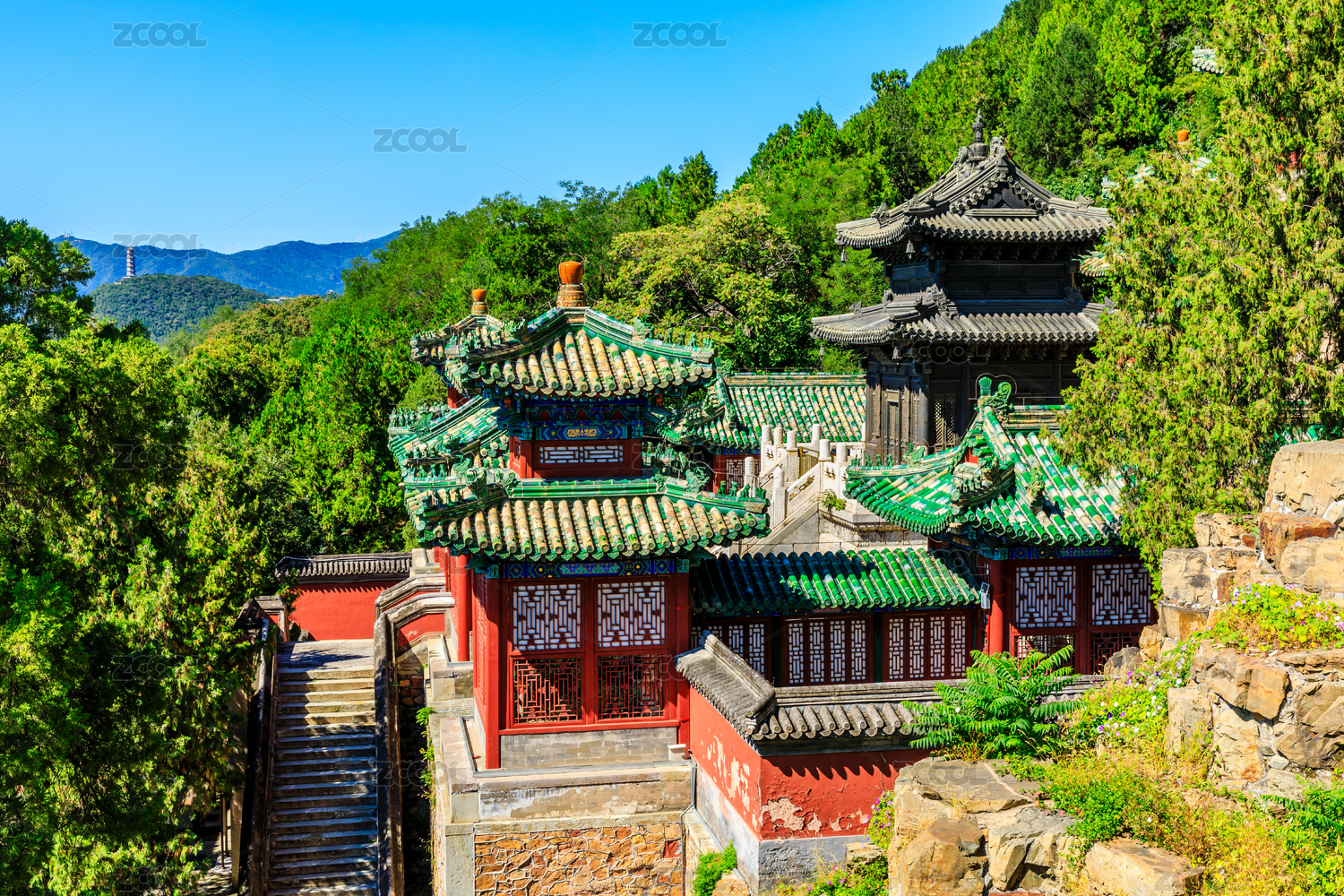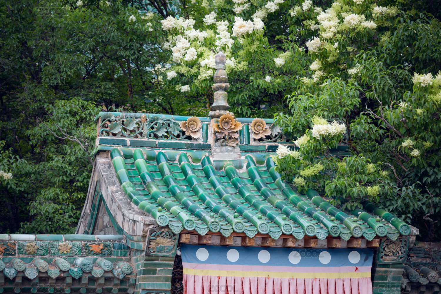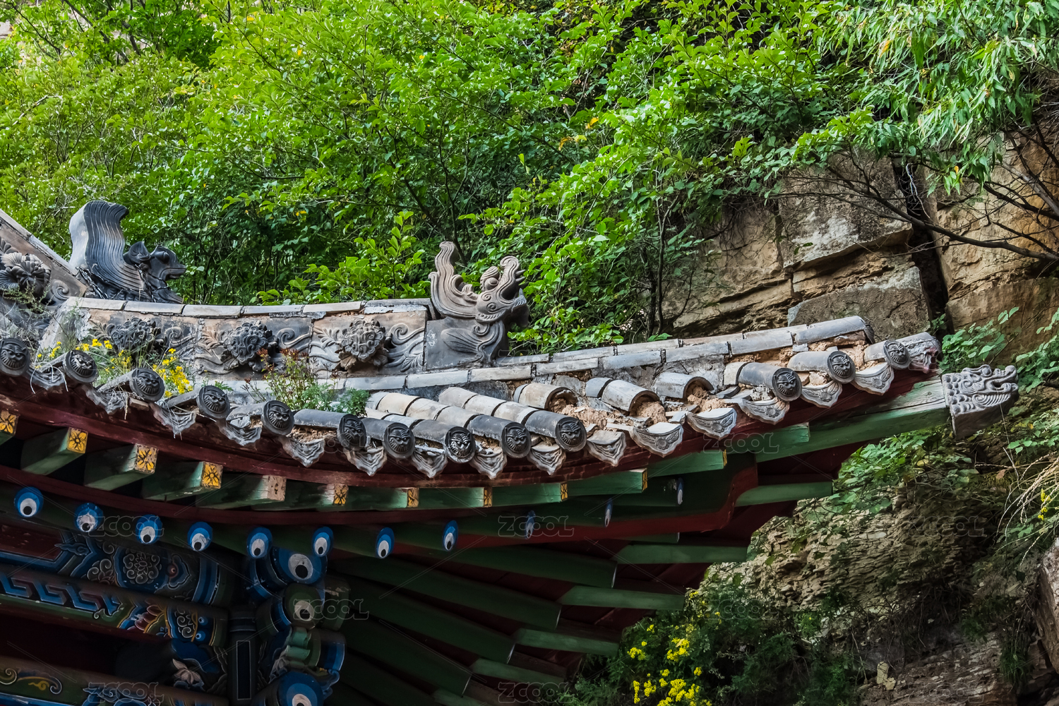 中国山西省恒山景区屋檐斗拱装饰园林建筑