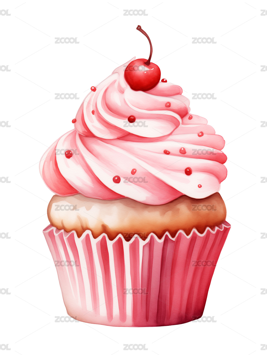 水彩插画美味的纸杯蛋糕