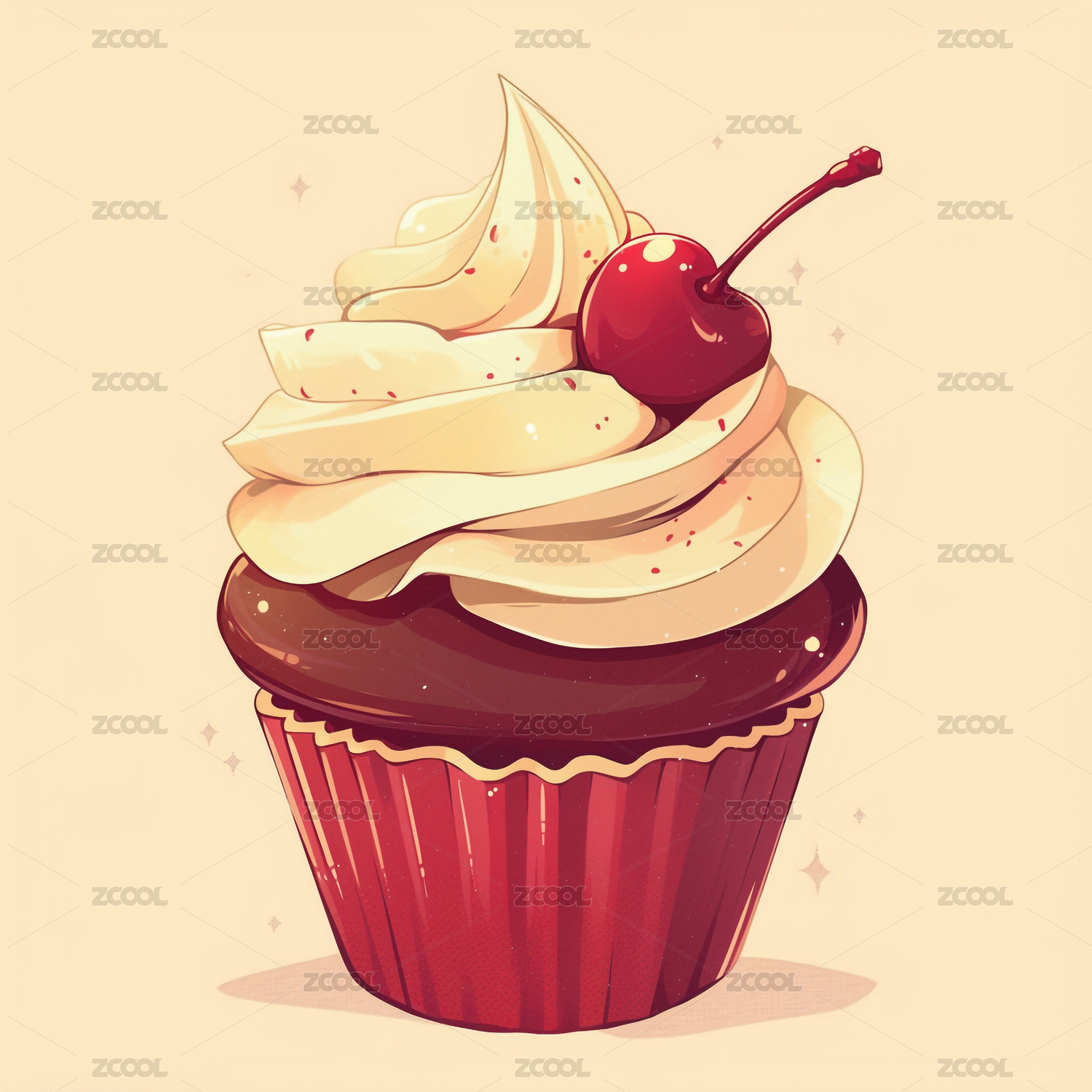 樱桃巧克力杯子蛋糕甜品美食插画元素