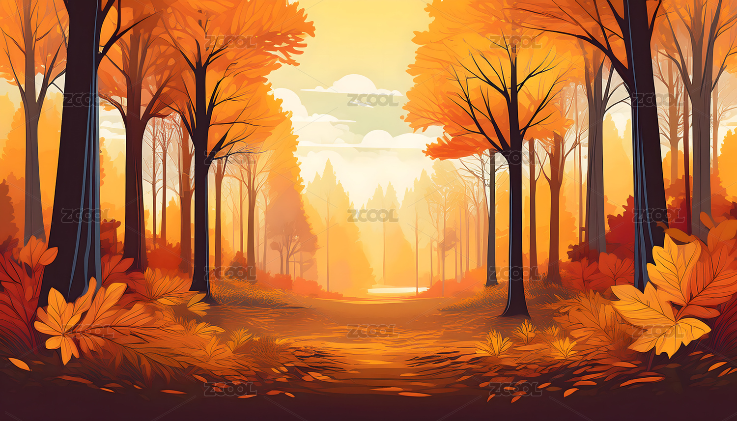 秋天的黄色森林卡通风景插画背景