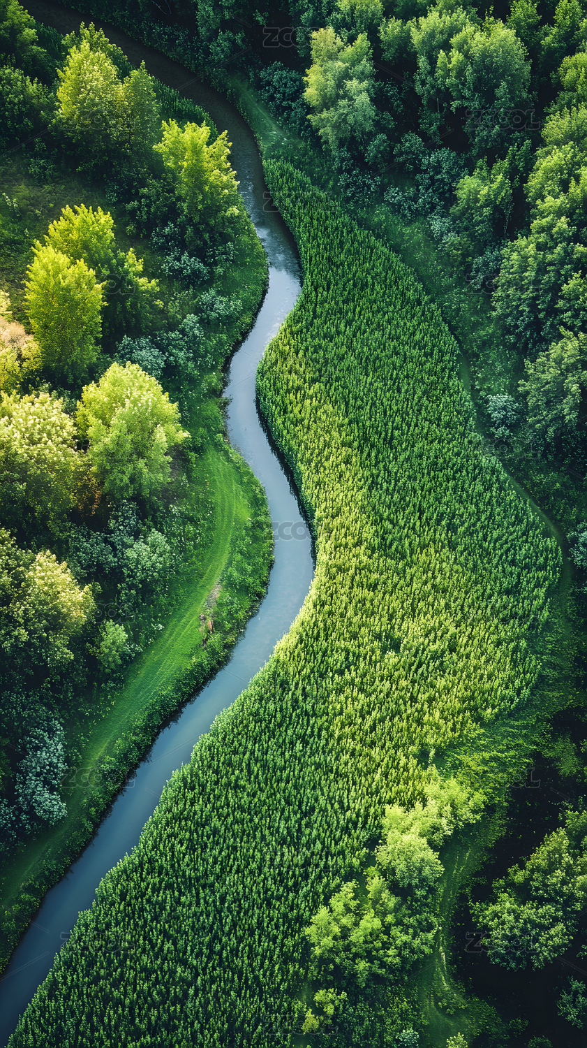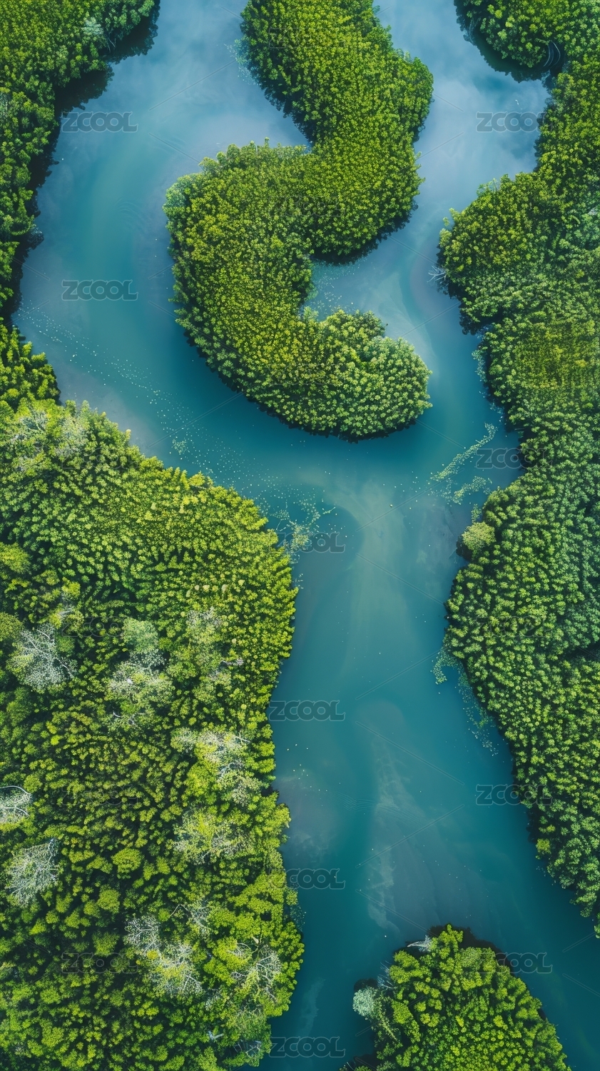 森林,河流,鸟瞰,绿色,水面,树木,自然,景观,生态,环境
