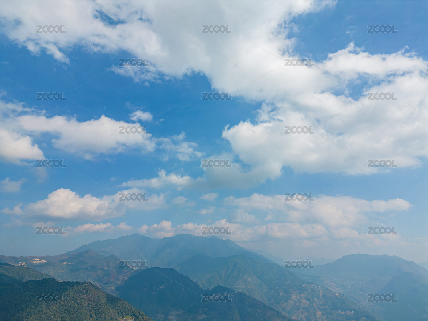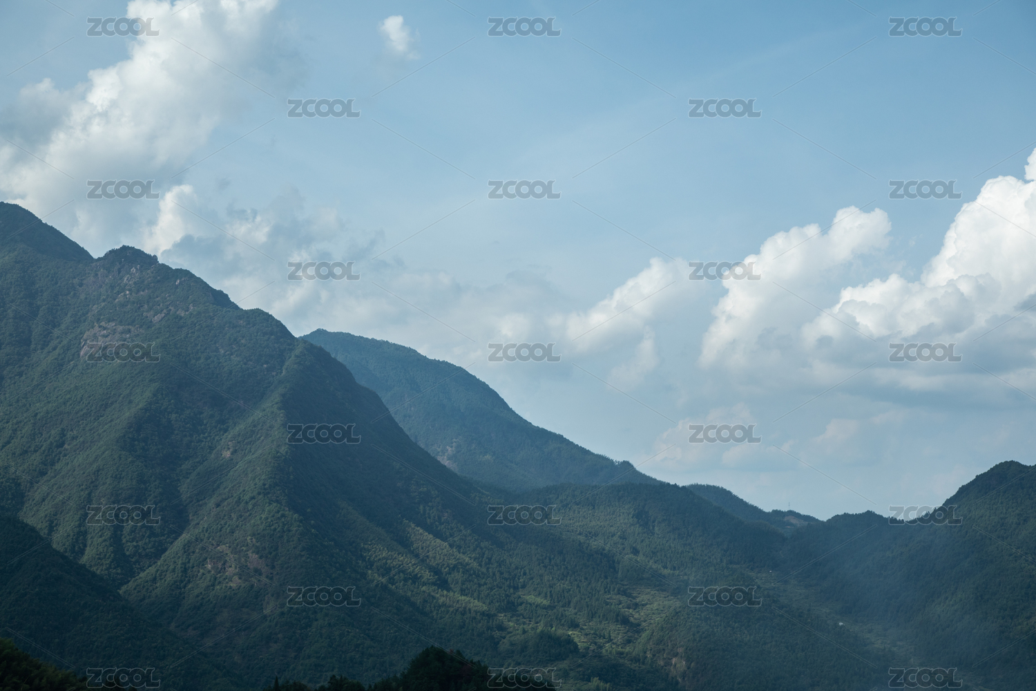 蓝天,白云,云彩,群山,山峰,群峦叠嶂,绿色,蓝色,植被,森林