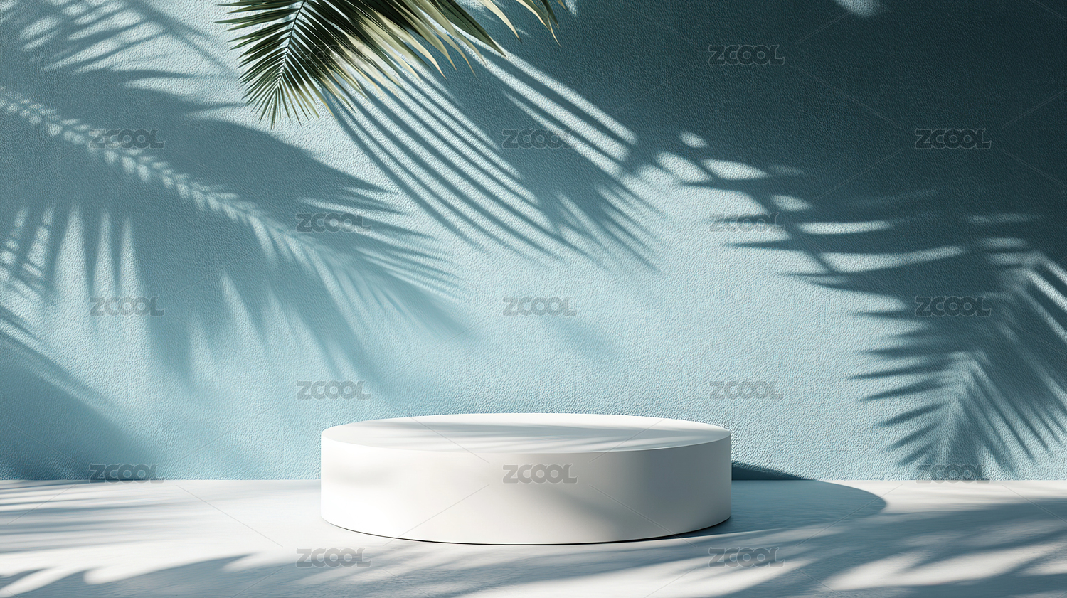 蓝色背景下的白色圆形展台