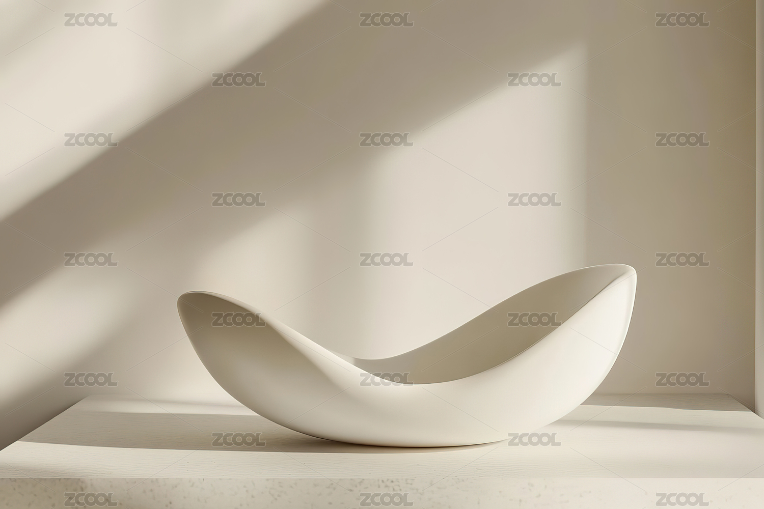 白色简洁展台上光影下的艺术品