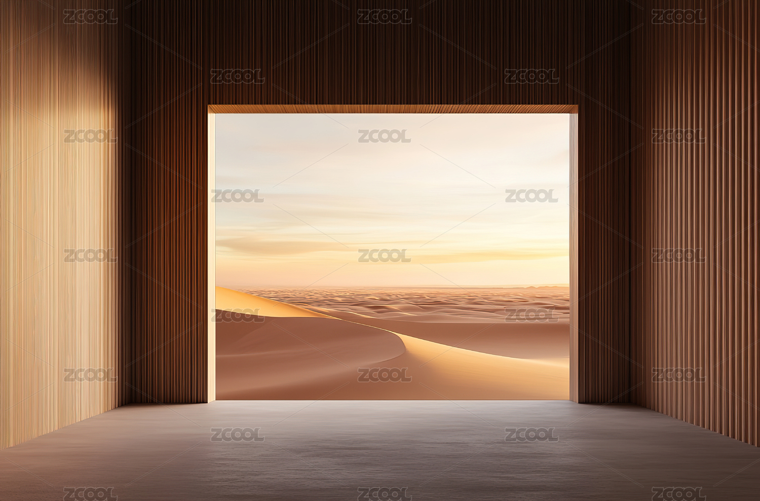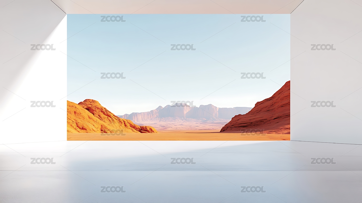 空旷室内与沙漠景观