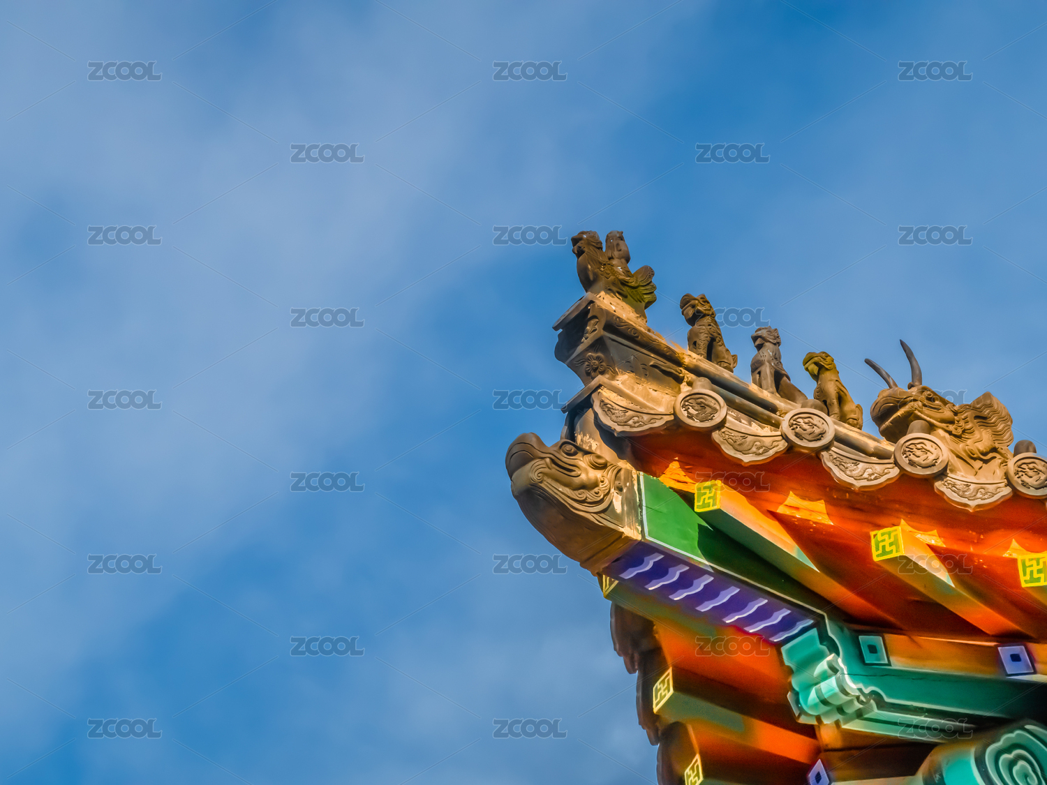 中国古典建筑屋顶神兽局部特写