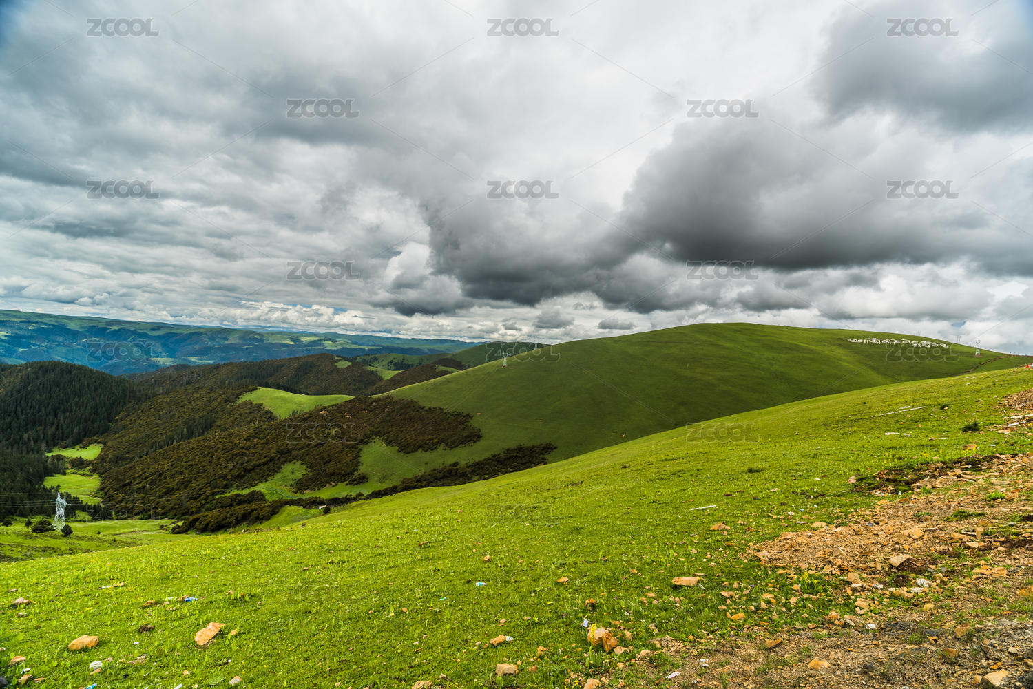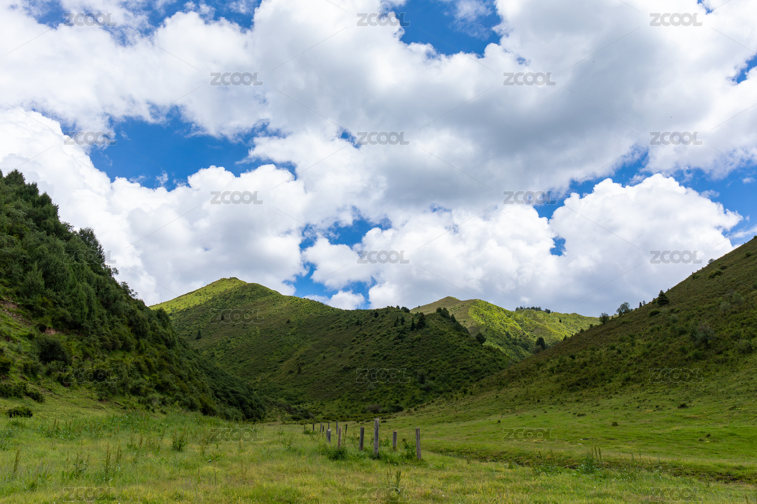 甘南秘境洛克之路连绵绿色山脉蓝天白云