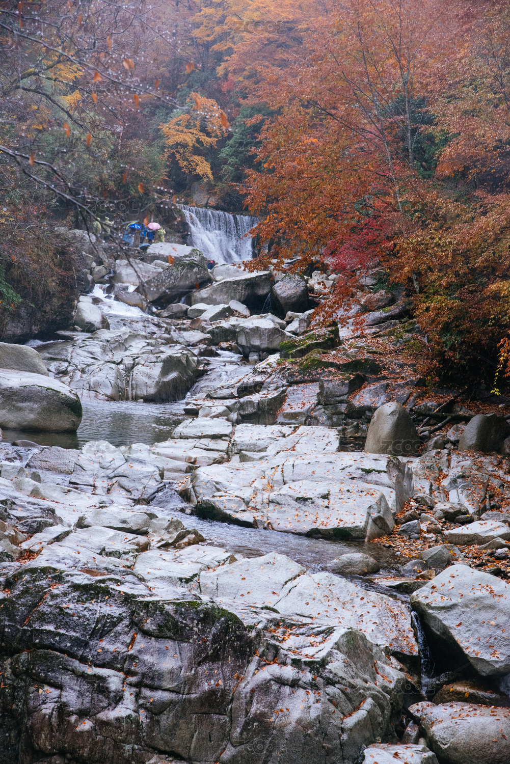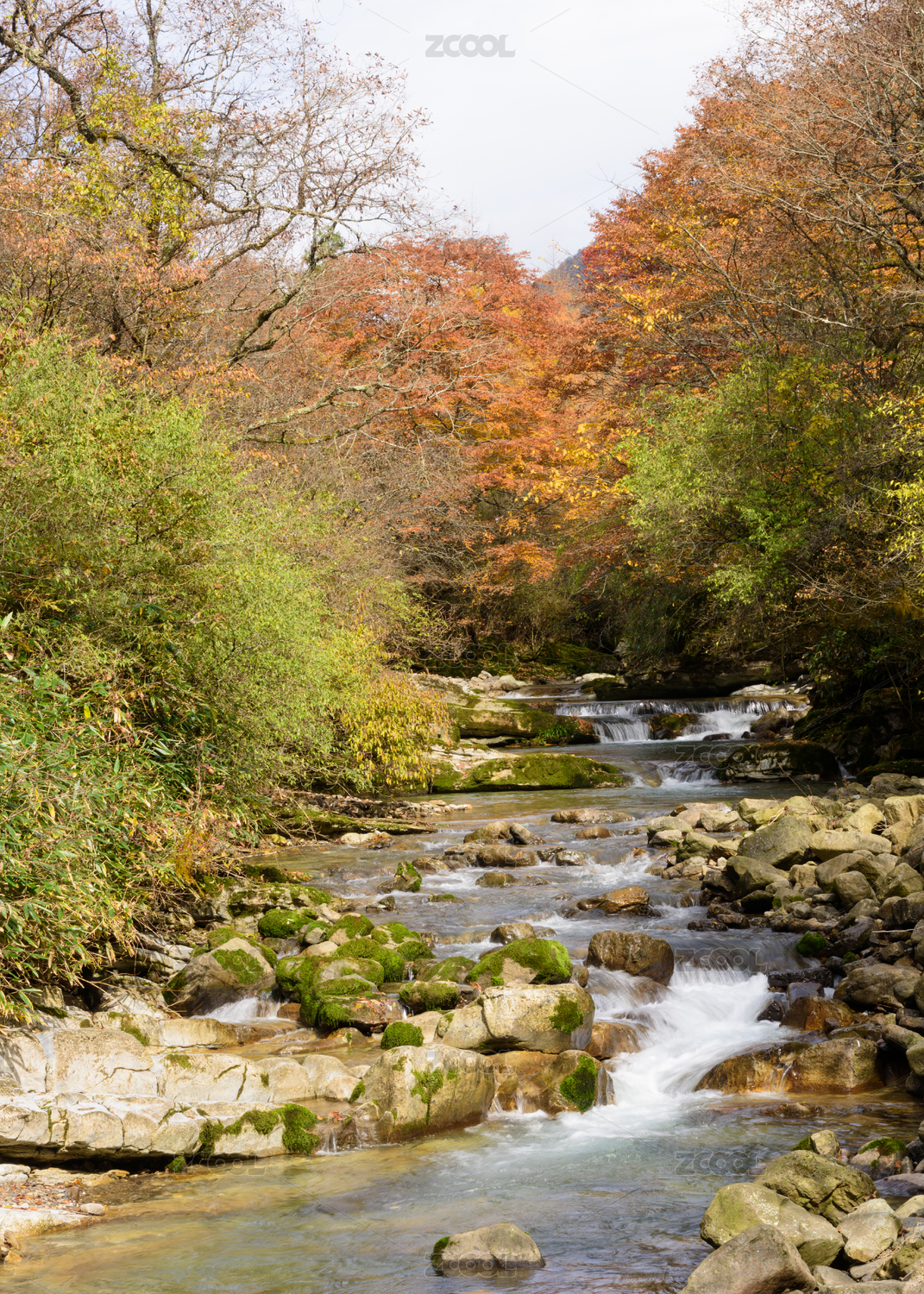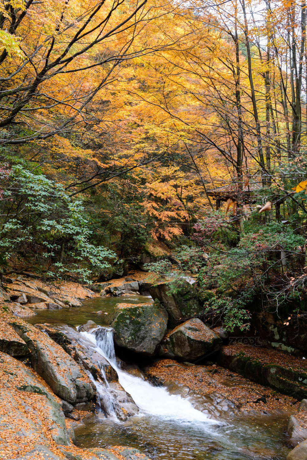 沈阳本溪老边沟,秋季枫树红叶溪流自然风光