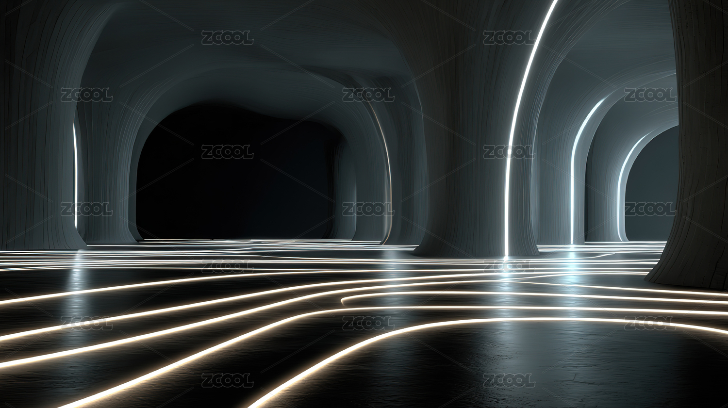 黑色弧形隧道空间