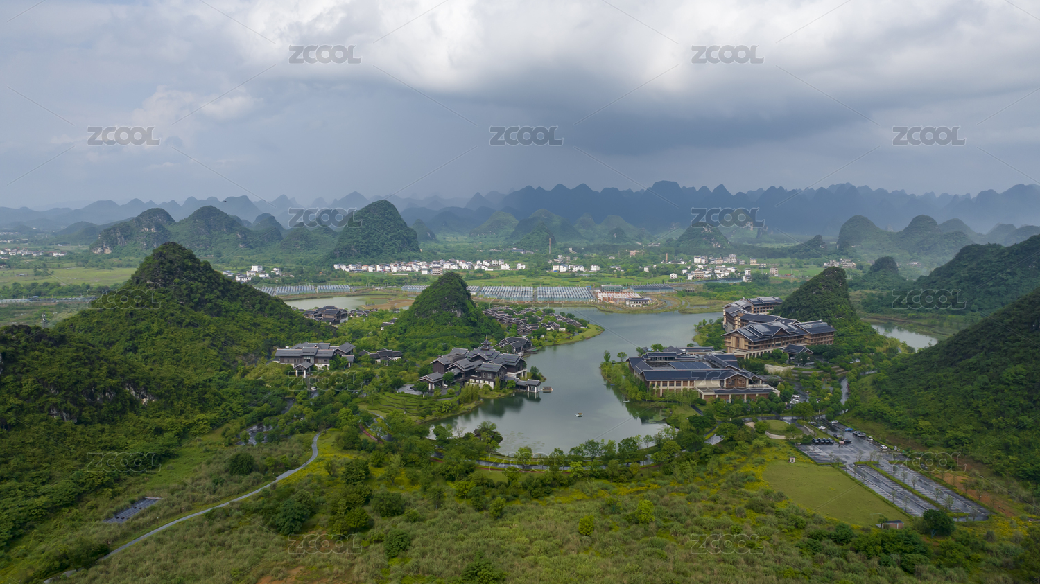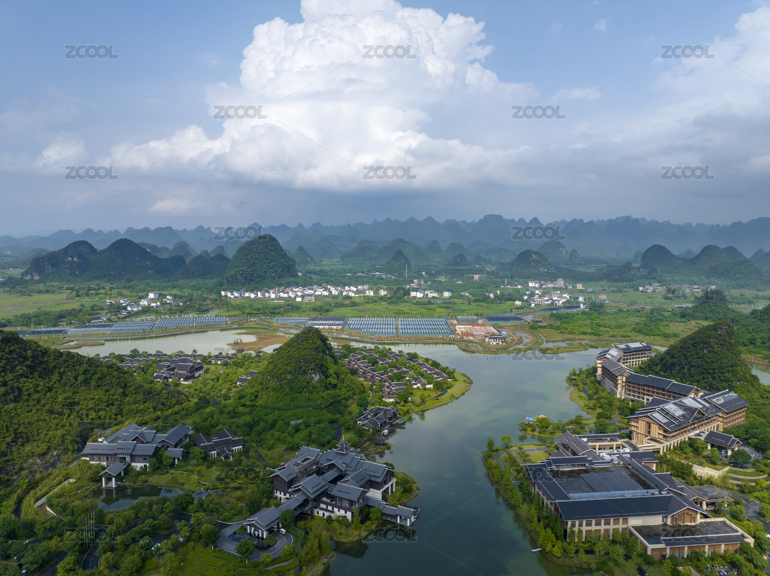 桂林阳朔漓江沿岸遇龙河自然风光山水航拍
