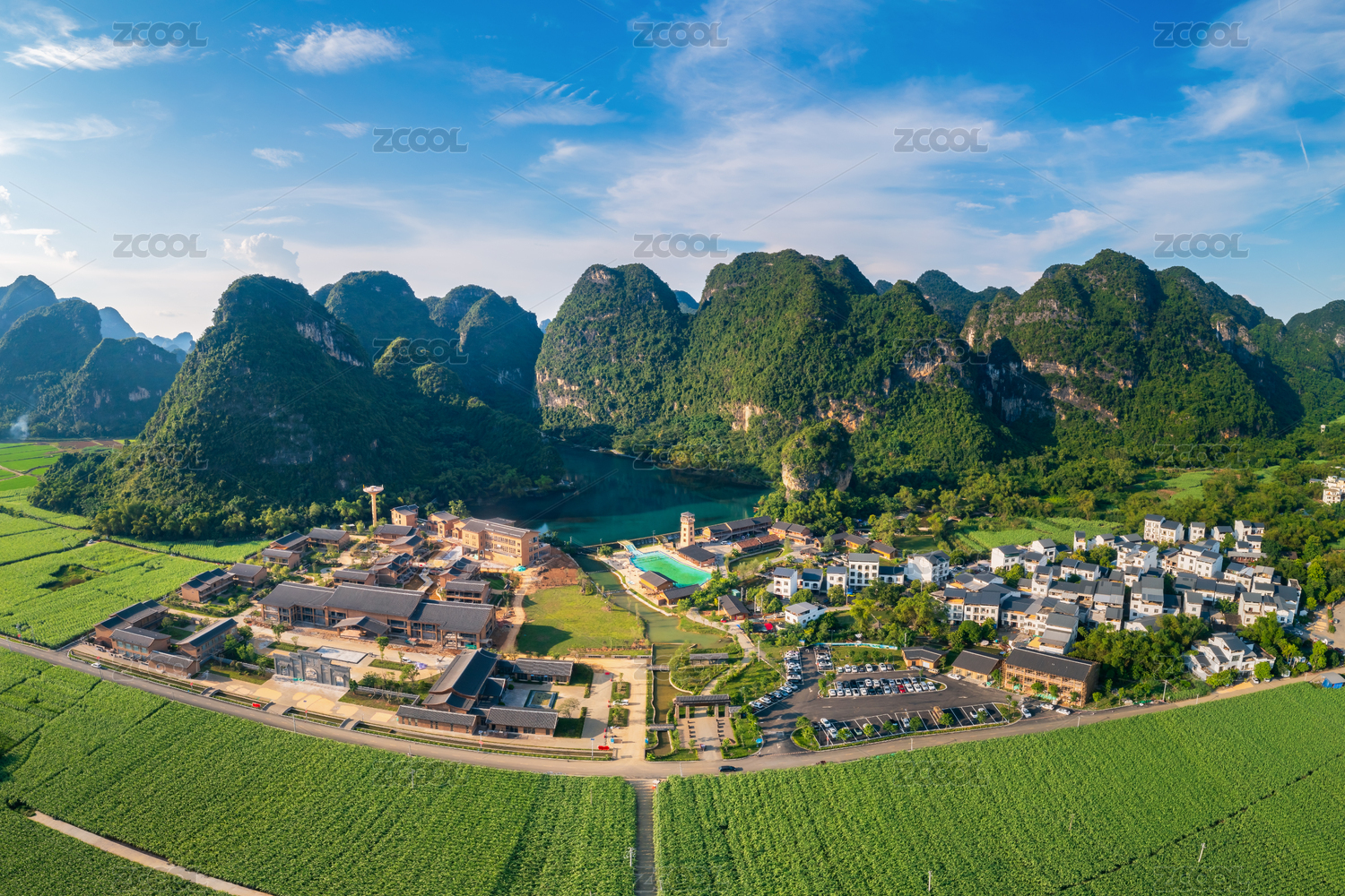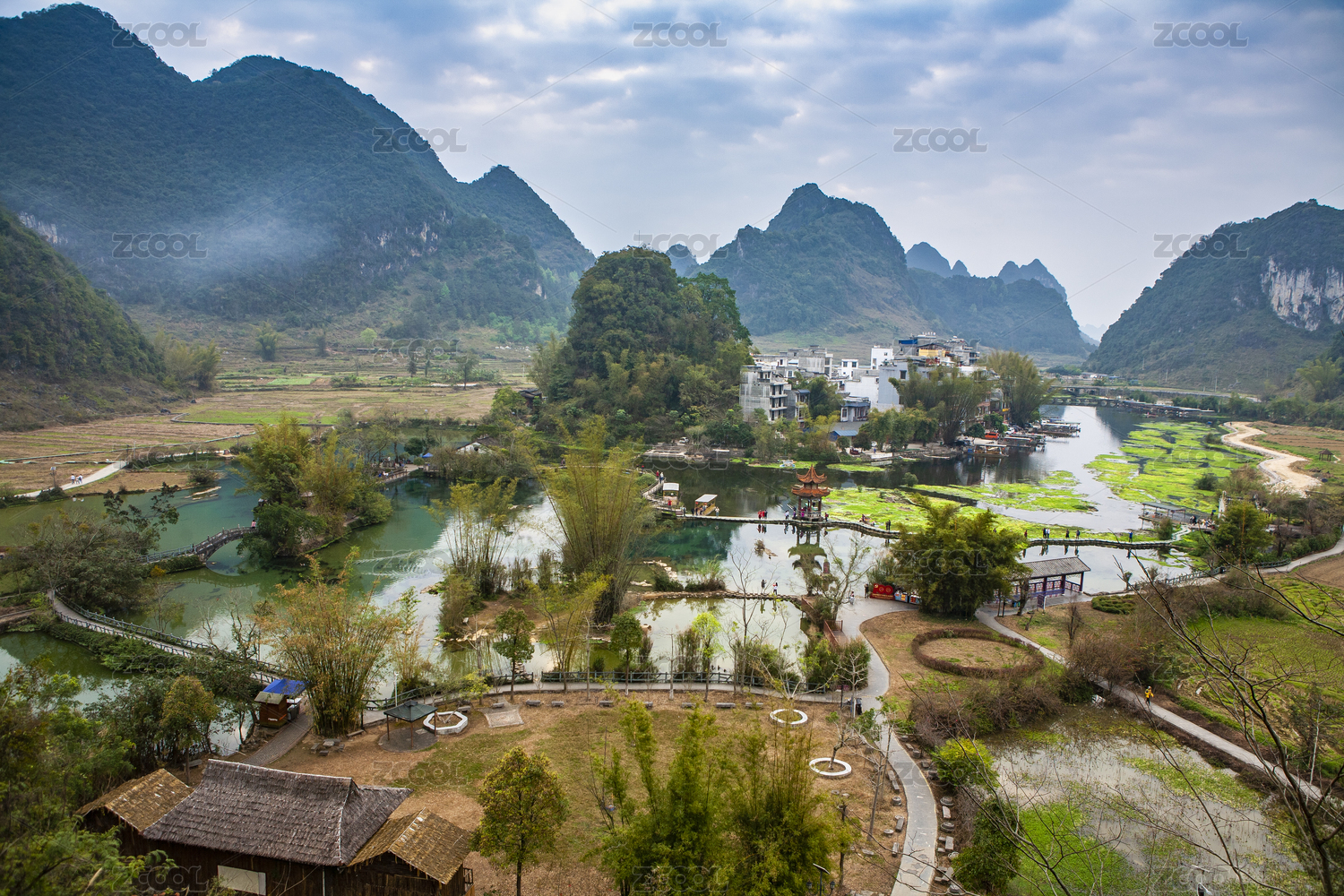 中国广西靖西市新靖镇鹅泉风景区全景风光
