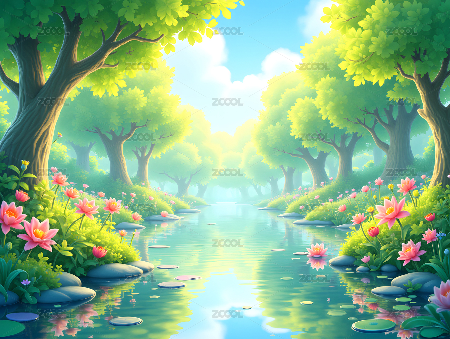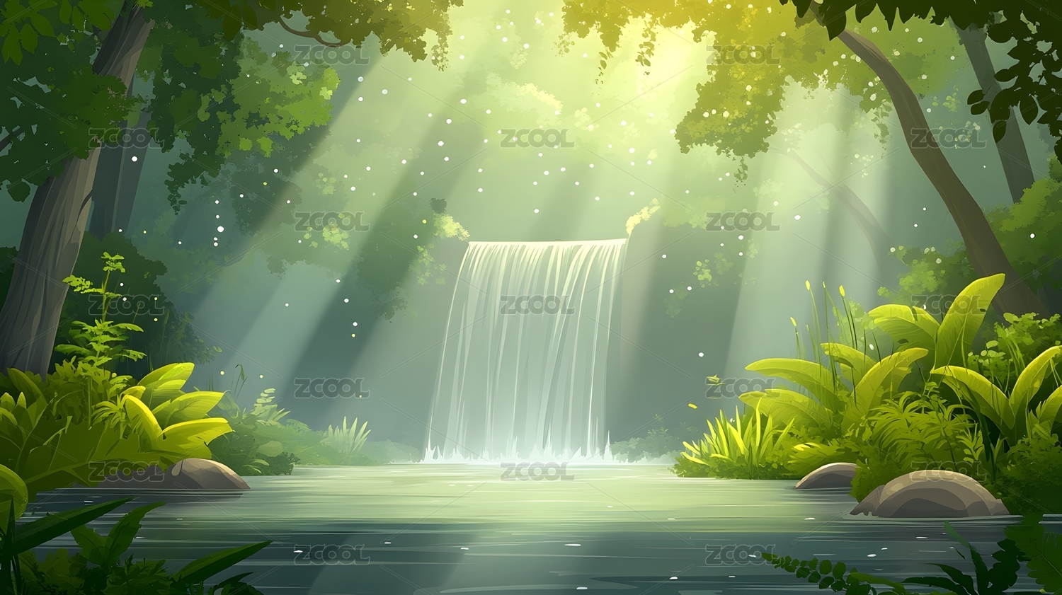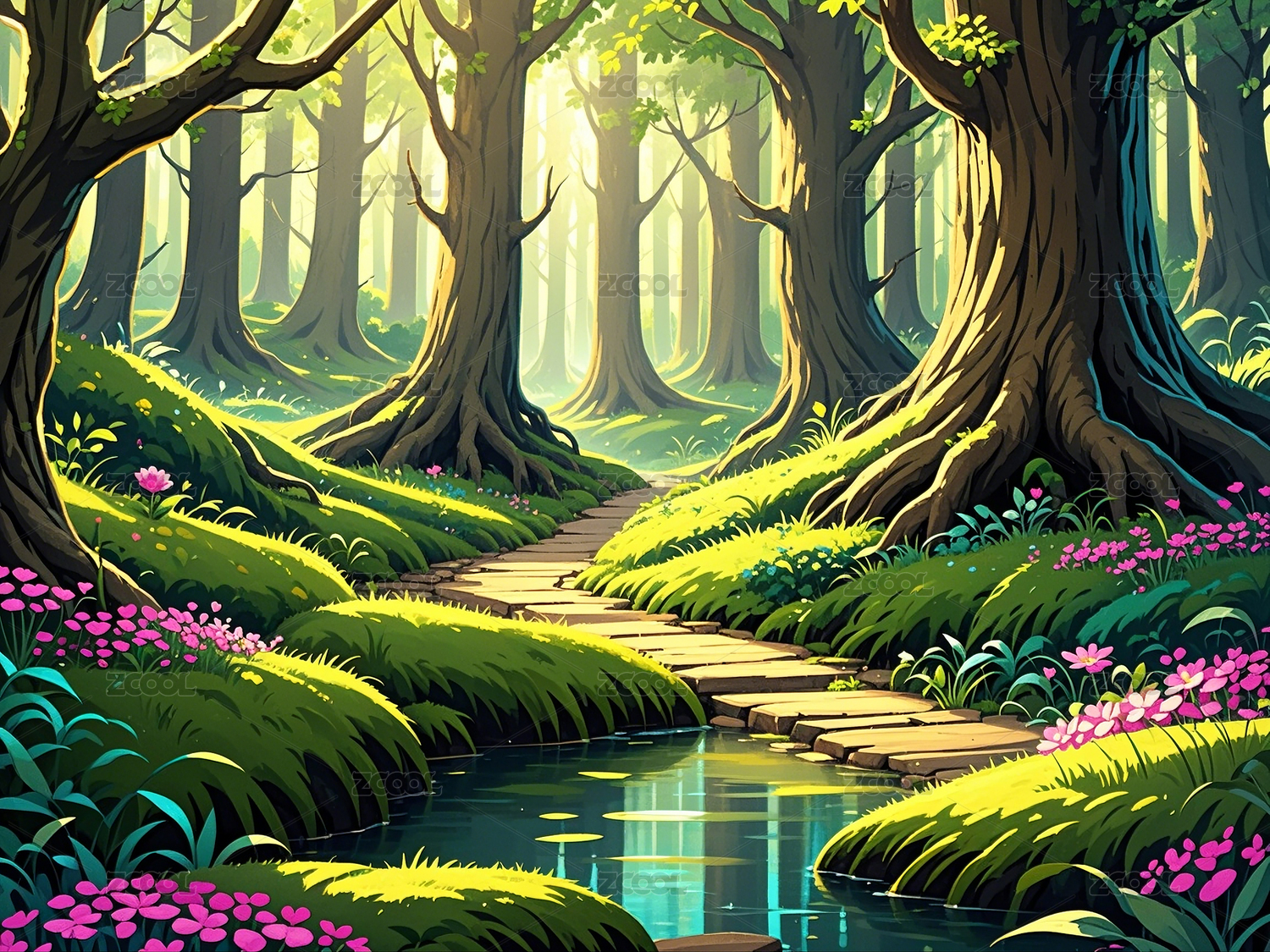 森林,溪流,树木,绿色,自然,阳光,风景,河流,石头,植物
