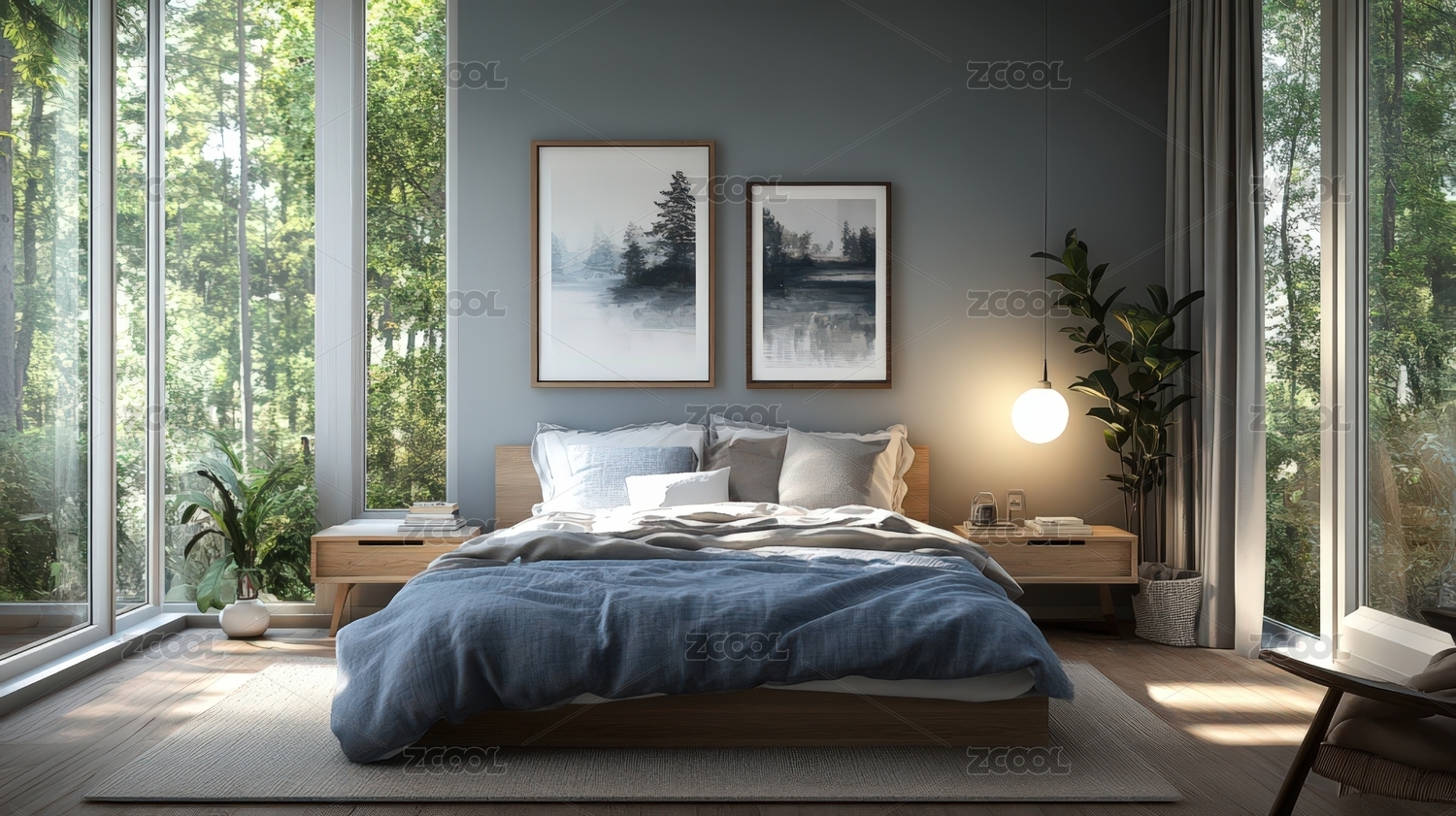 自然简约田园风现代卧室室内场景