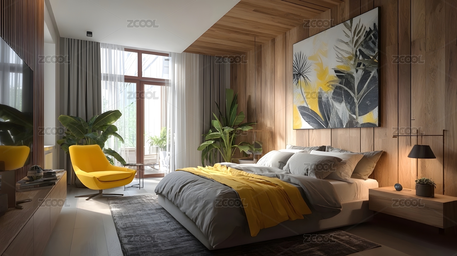 木质墙面现代卧室