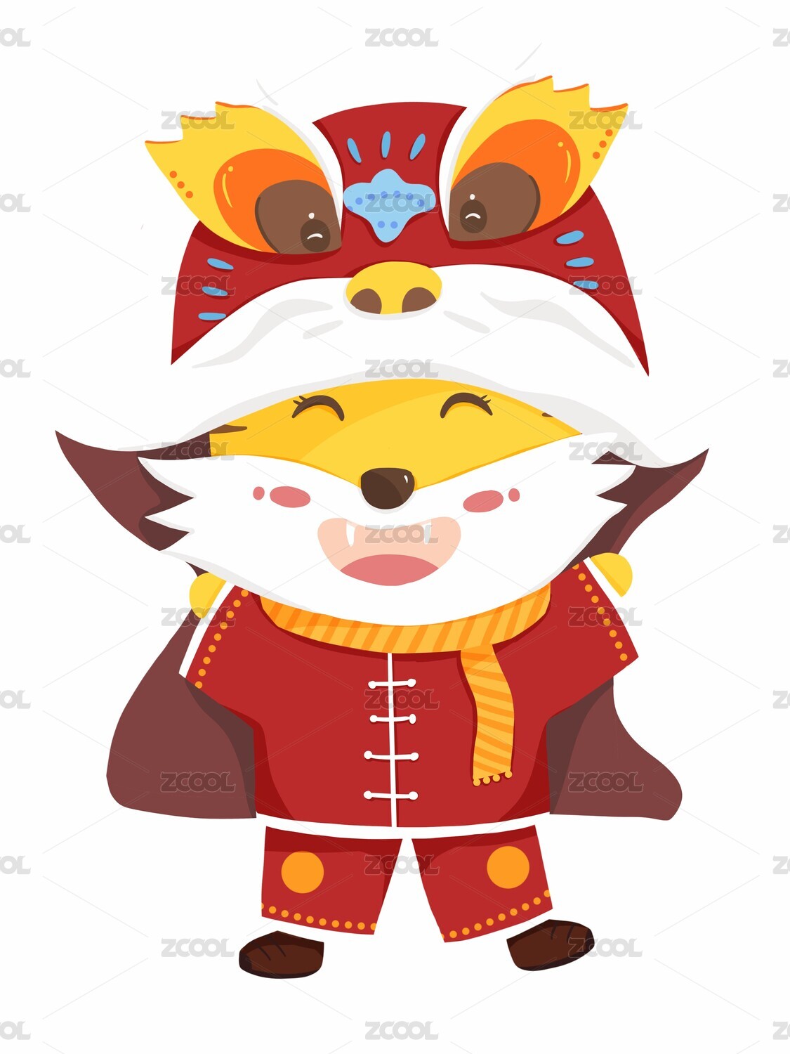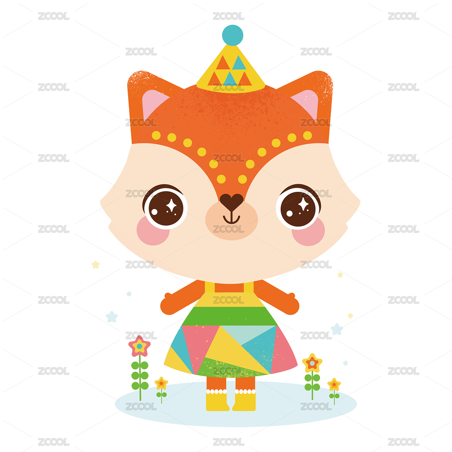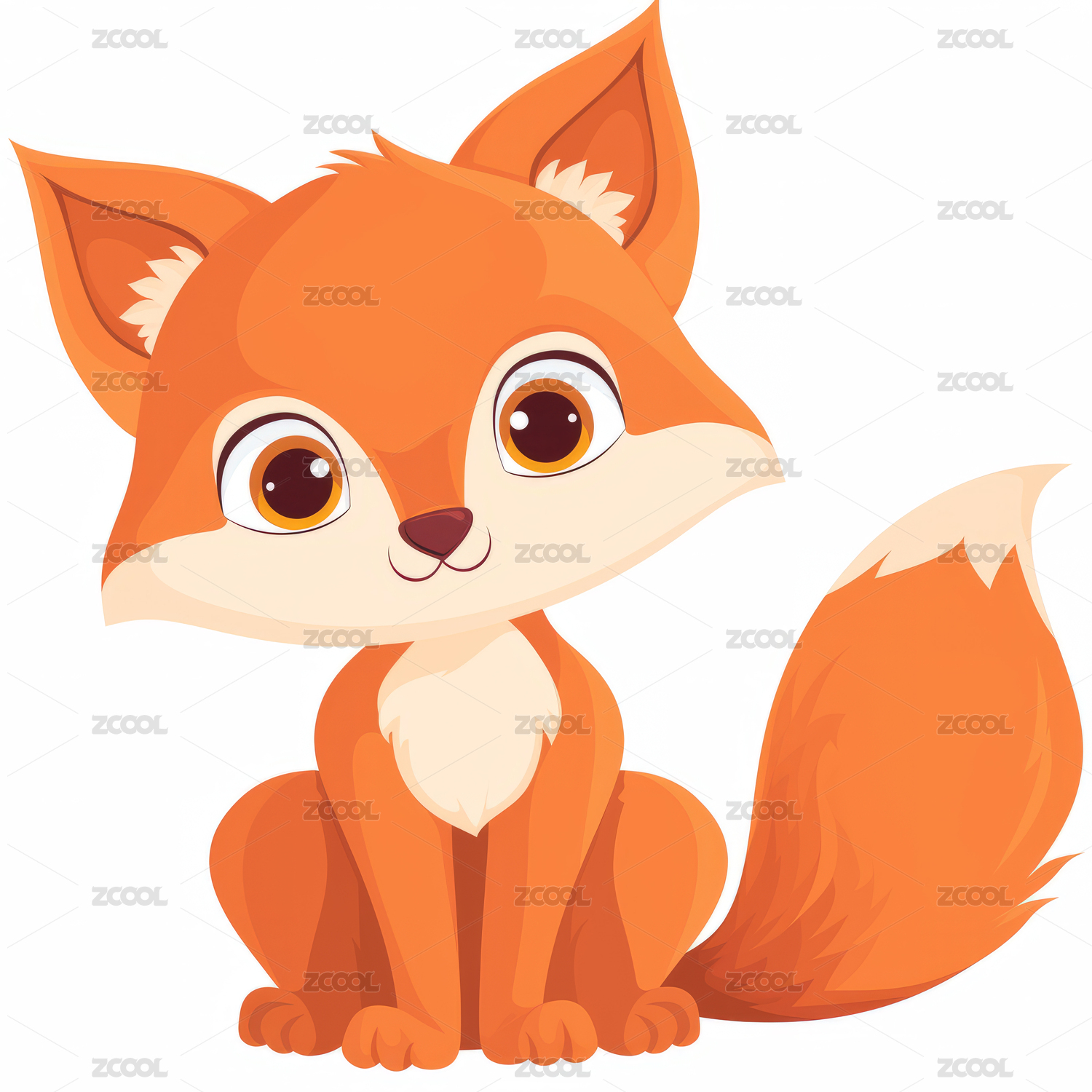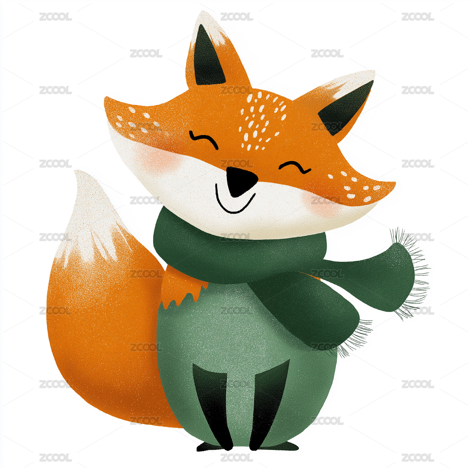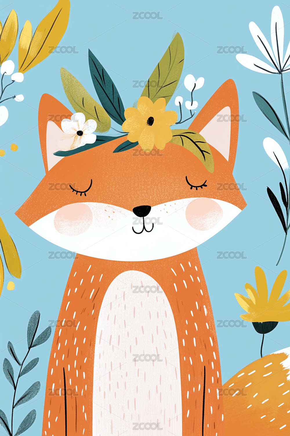 卡通毛茸茸大耳朵狐狸看图识物动物卡片插画