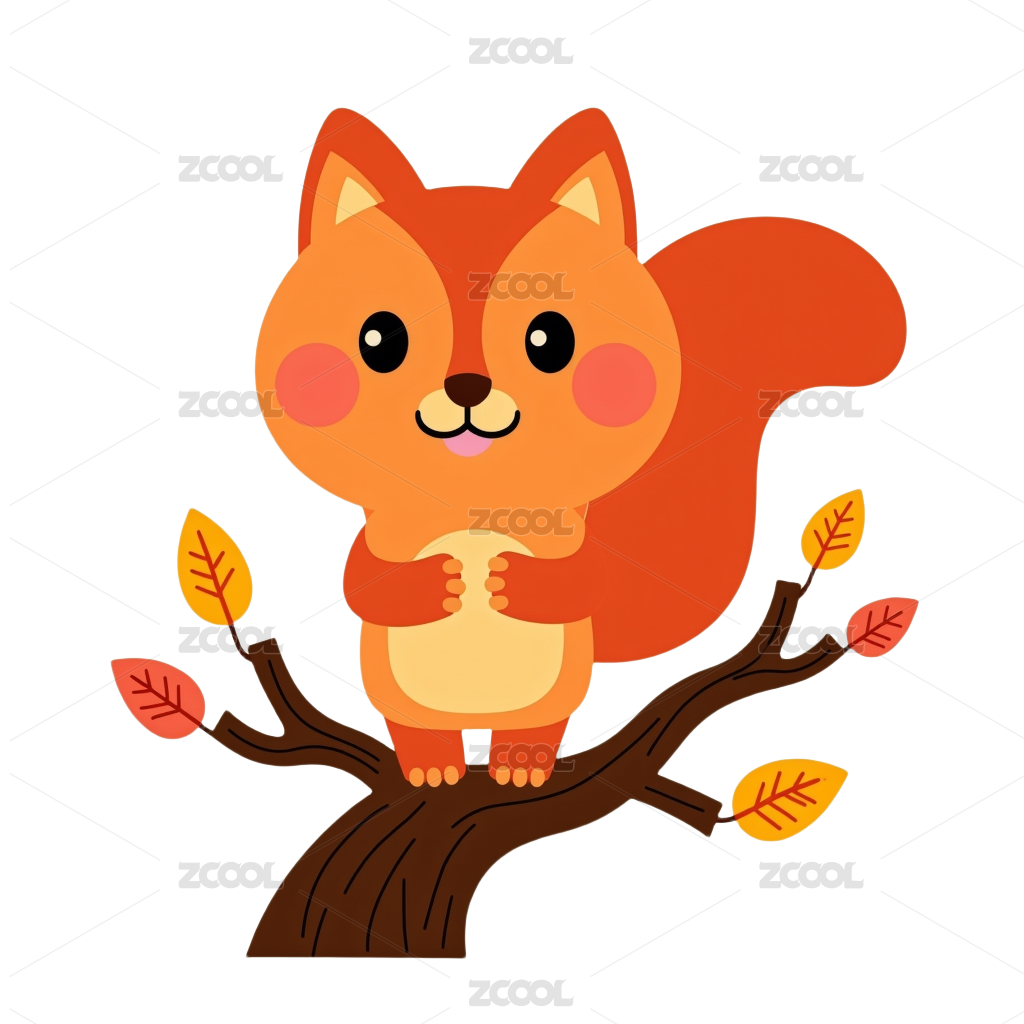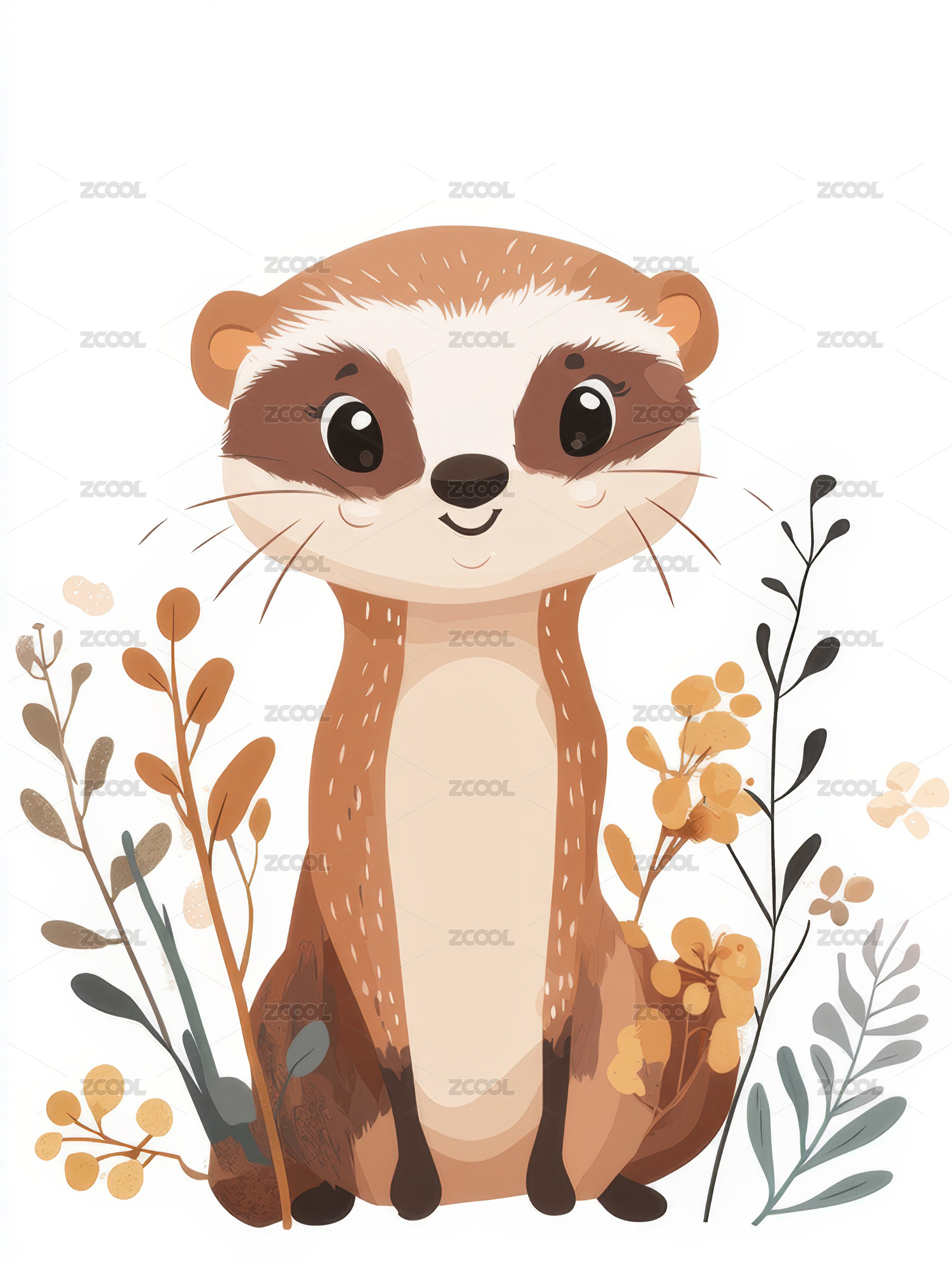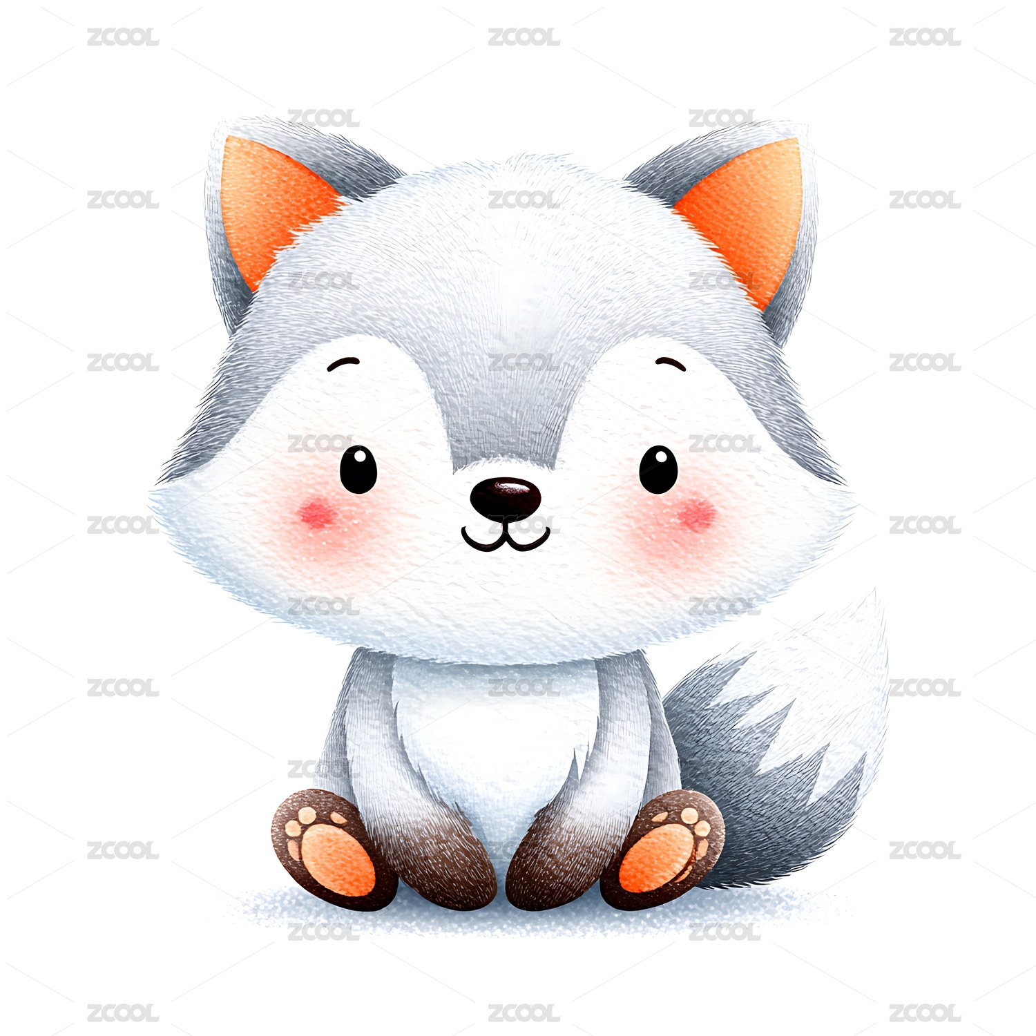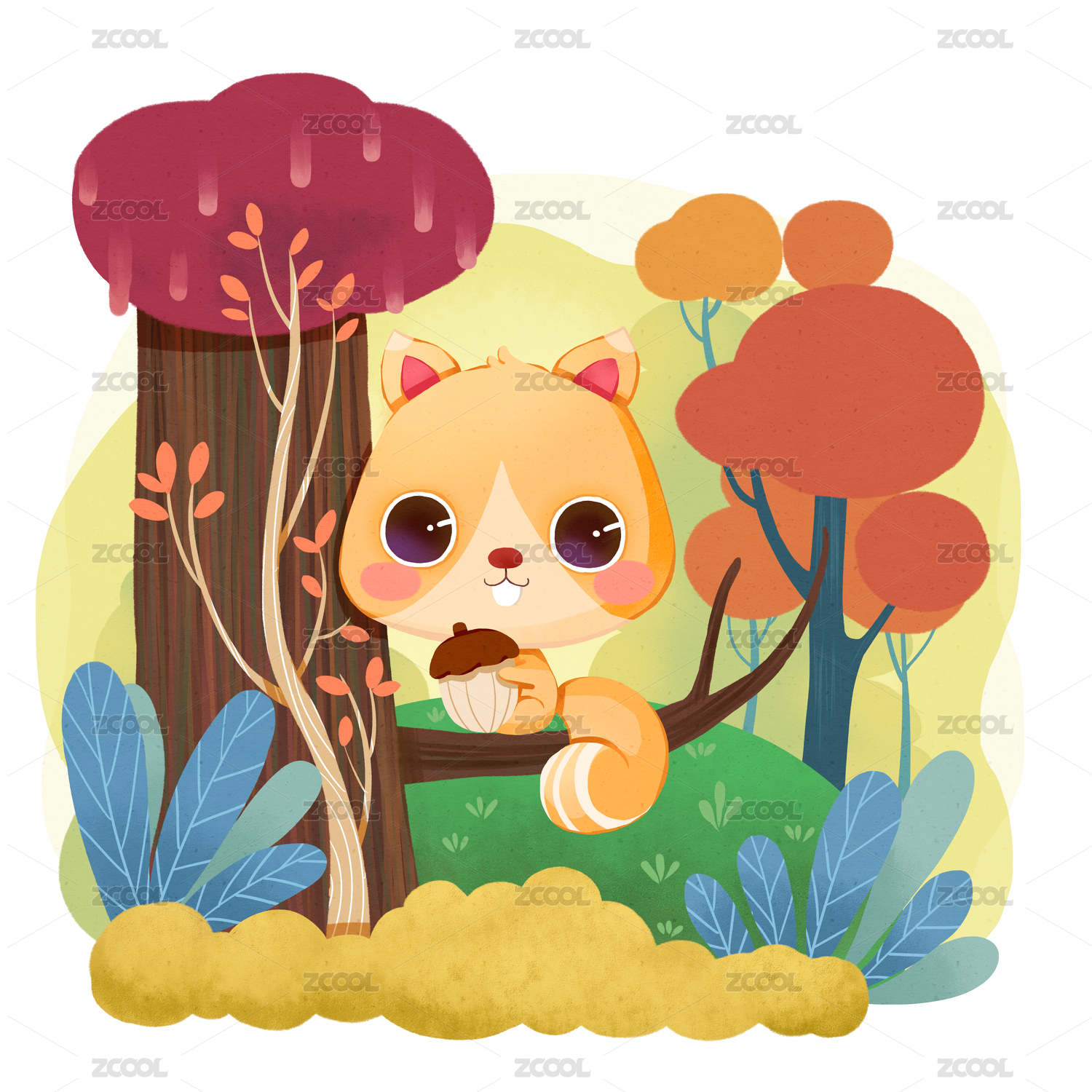 卡通毛茸茸大耳朵狐狸看图识物动物卡片插画