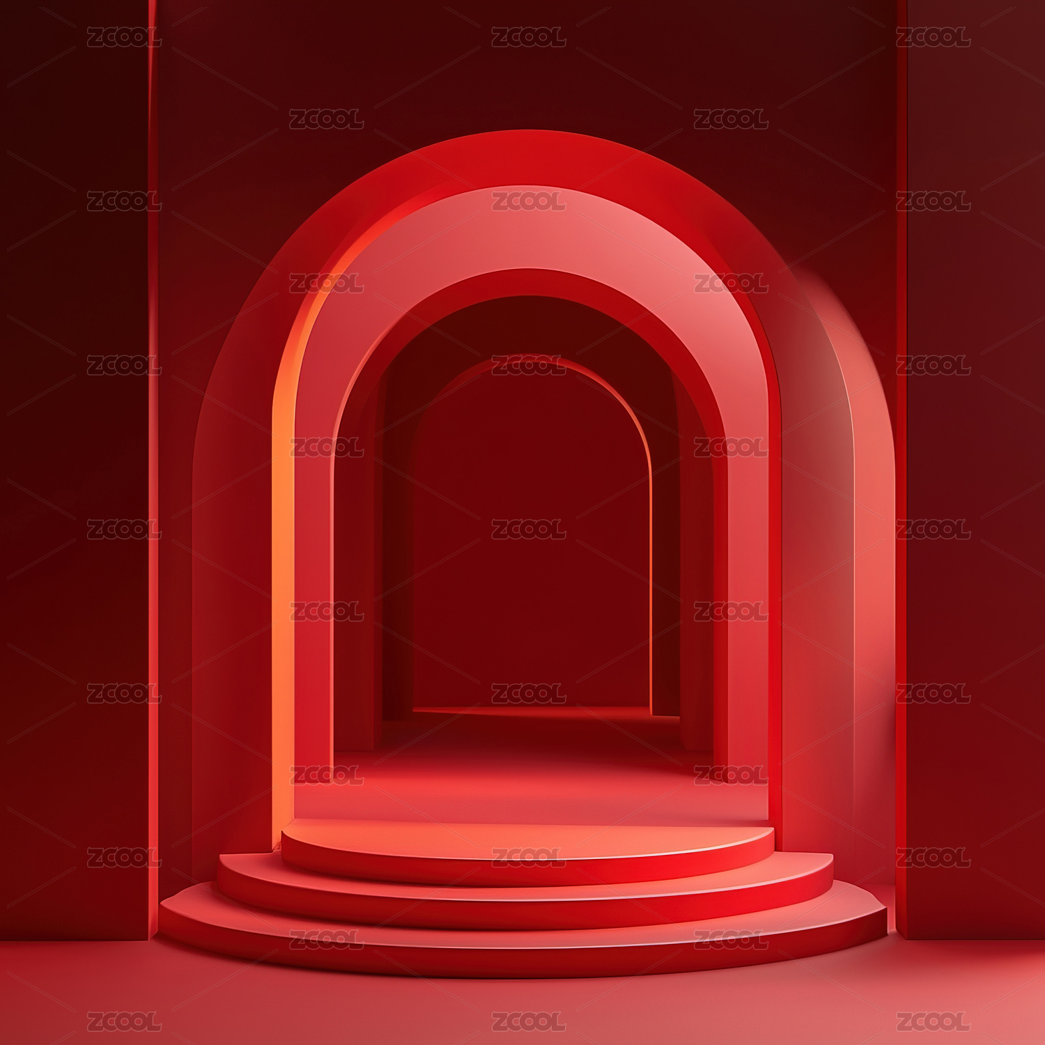 3D红色发光三维透视拱门空间场景