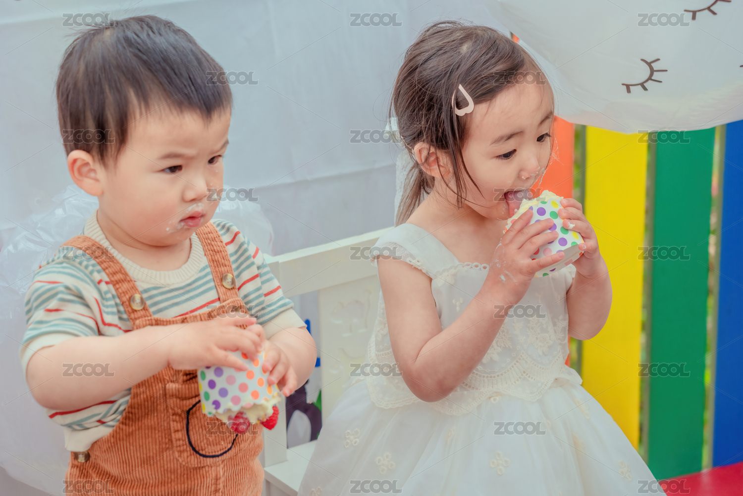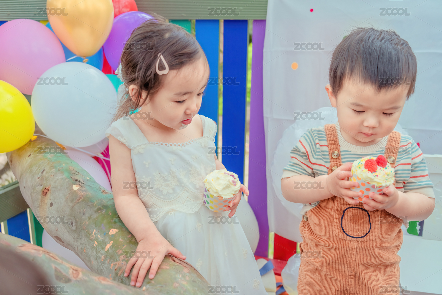 彩虹树屋里享受吃蛋糕美味的孩子们