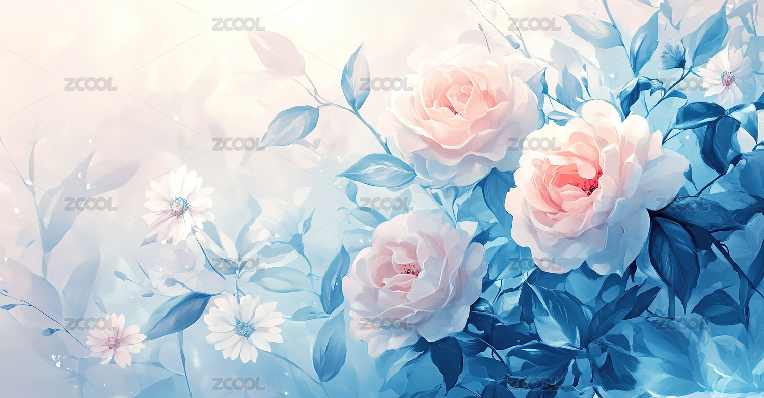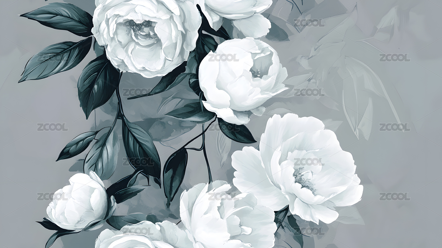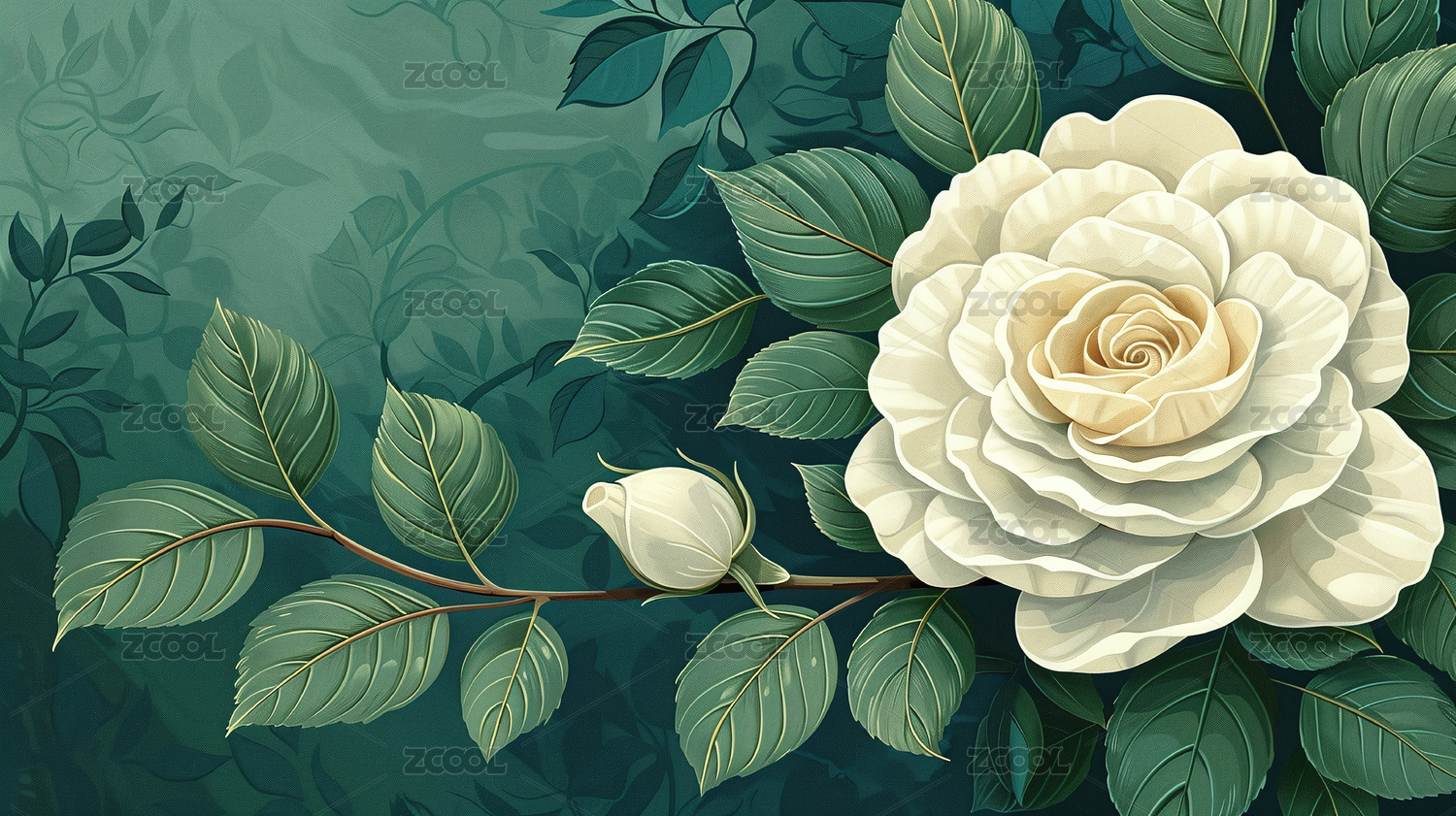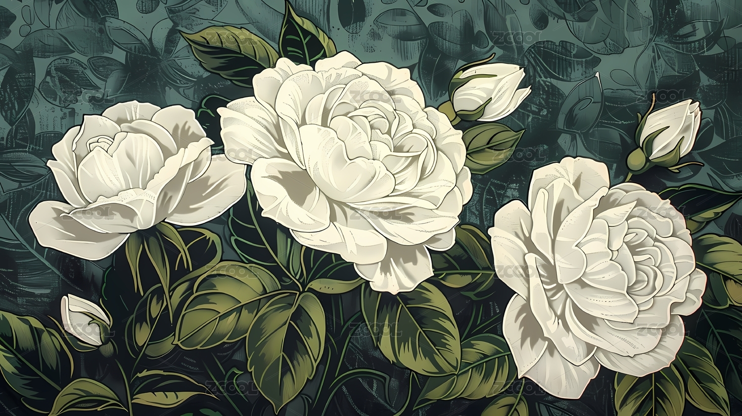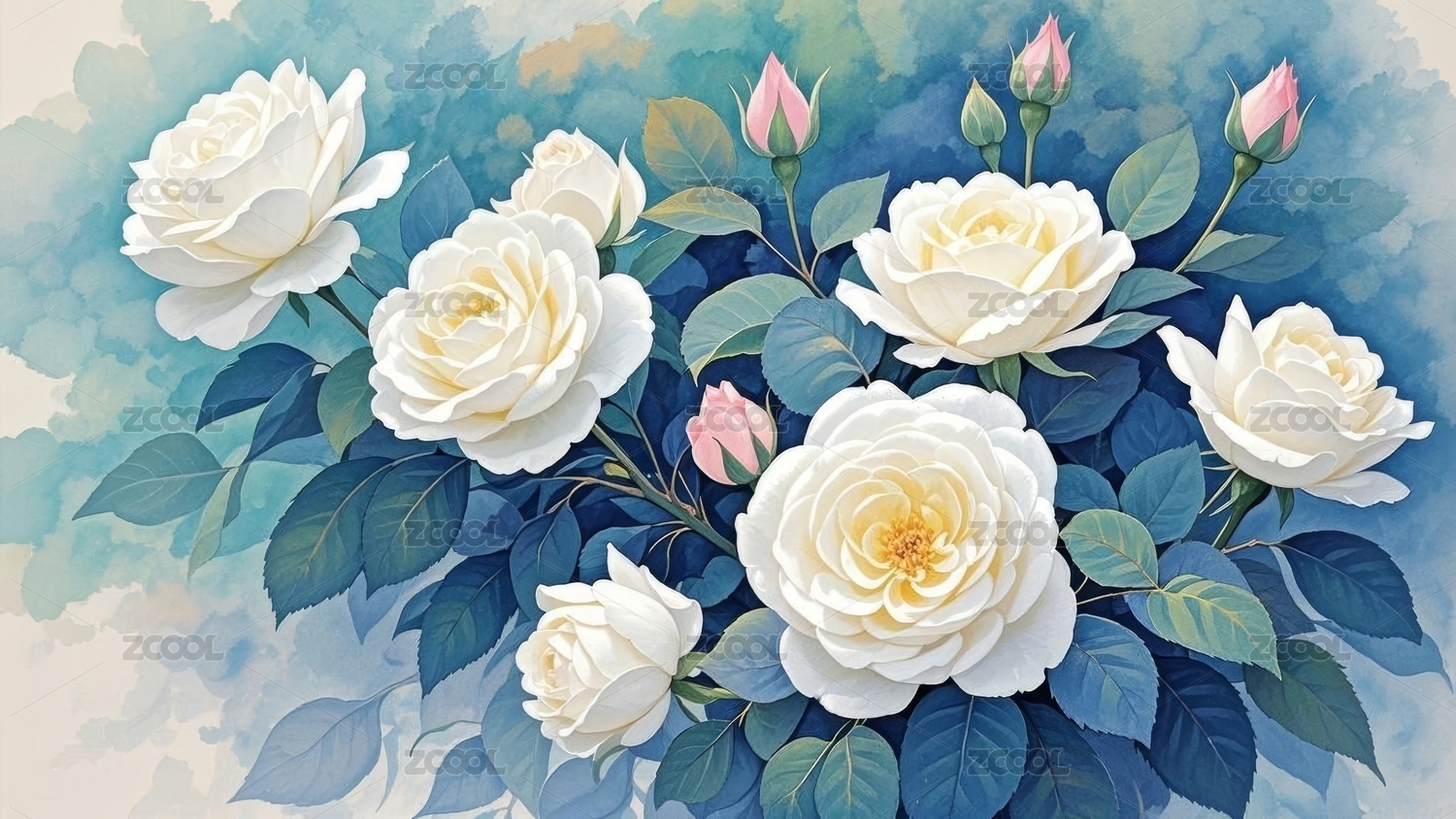 白色,花朵,绿色,花束,叶子,自然,卡通,风景,水彩,油画