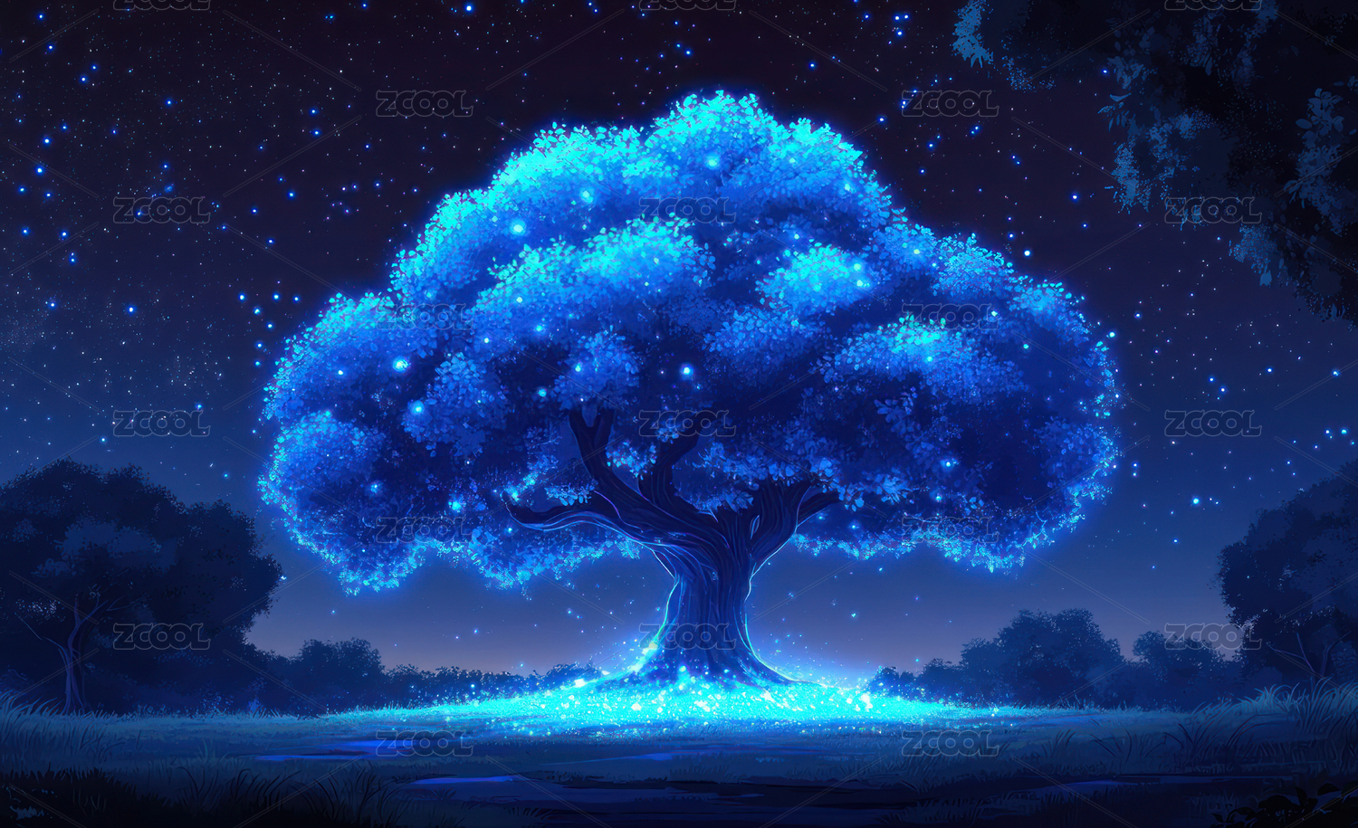 科幻,蓝色,发光,树,星星,灯,树枝,植物,闪烁,自然