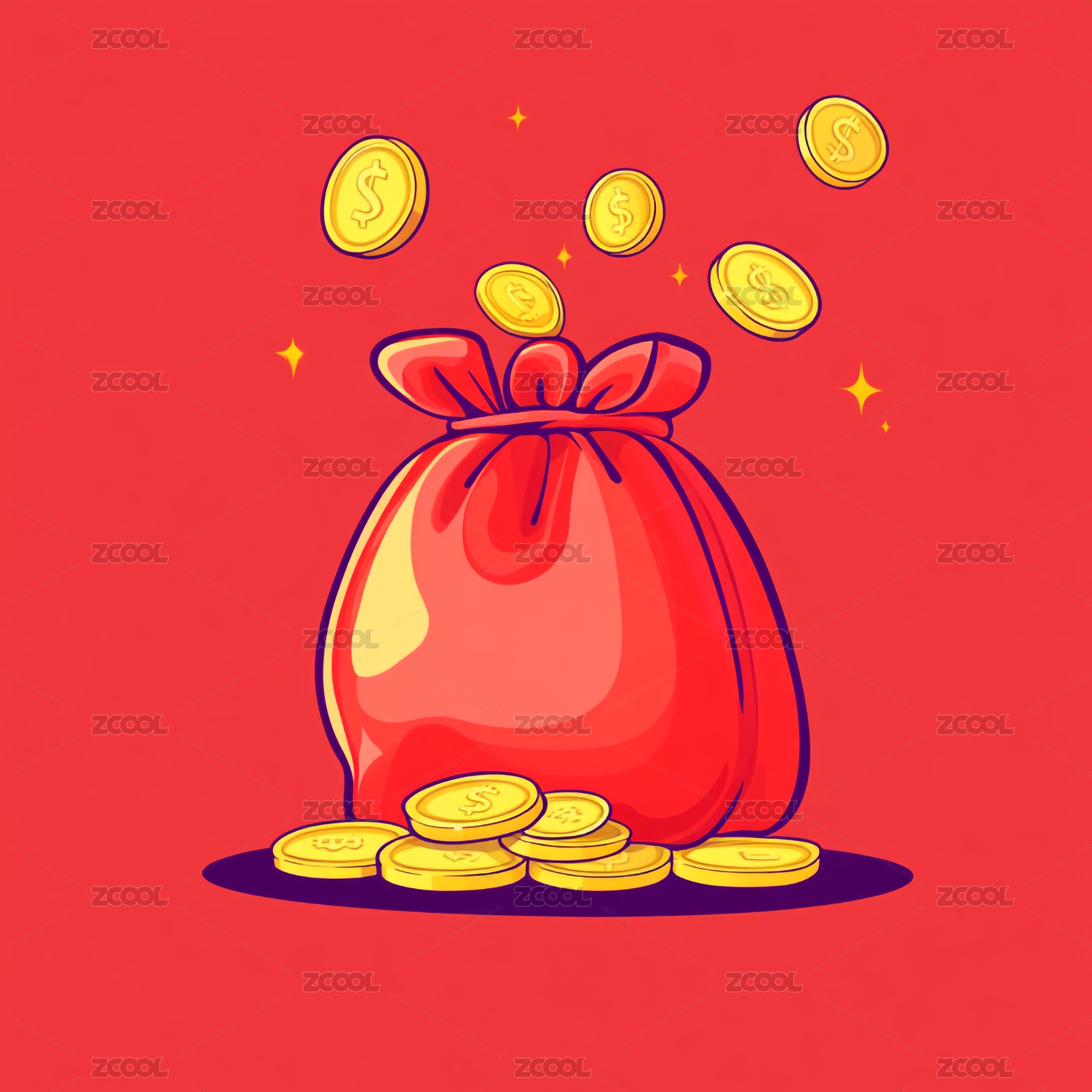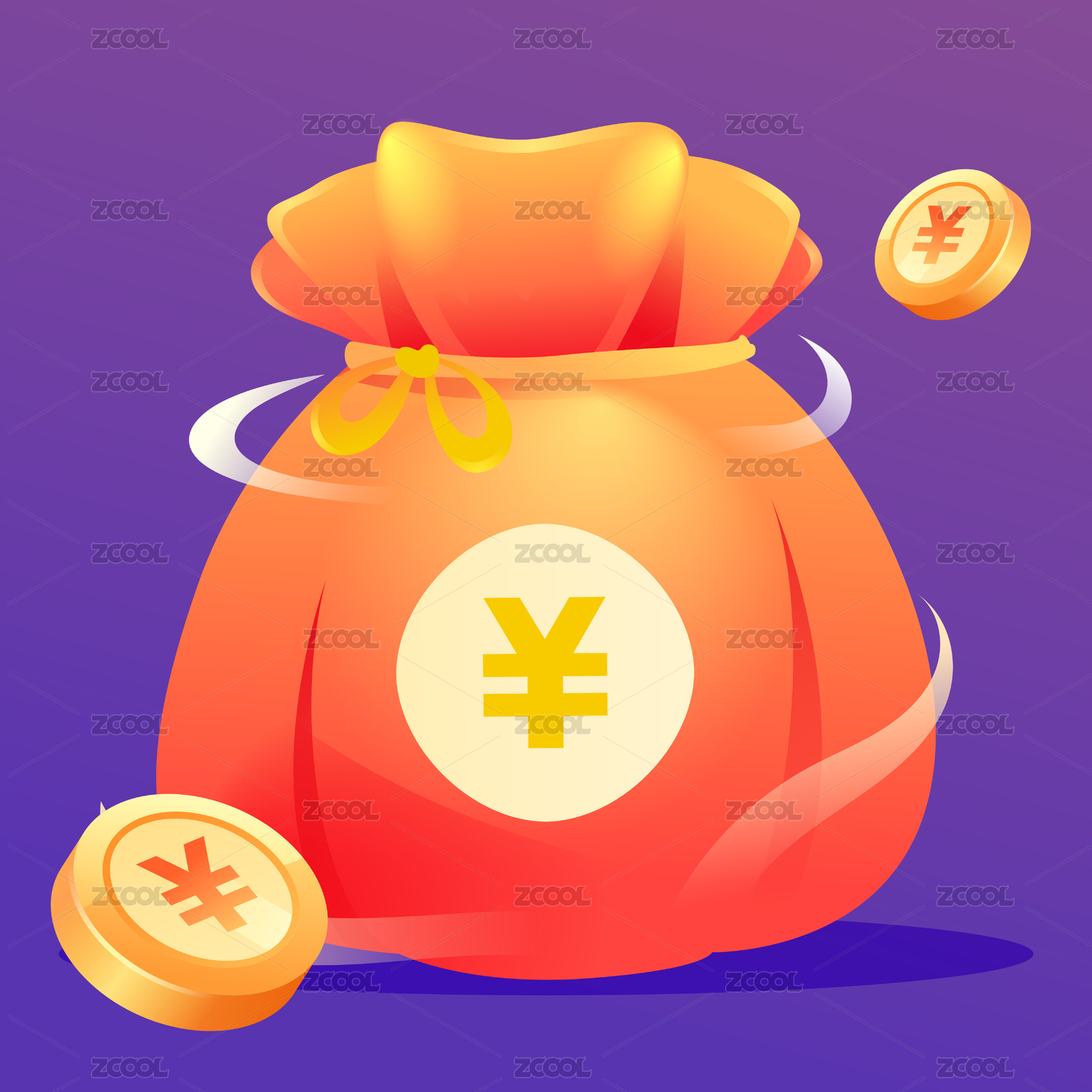 卡通钱袋促销抽奖互联网金融收益理财插画
