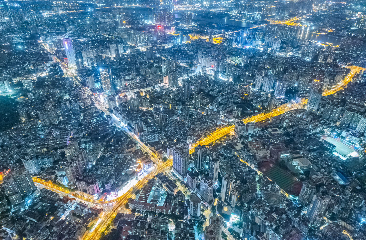 广东潮州古城榜眼街夜色下古镇夜景灯火辉煌