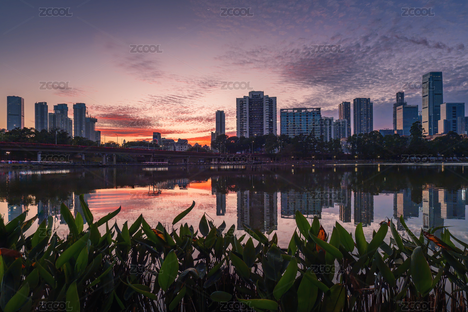 龙岩龙津湖边的高楼及倒影,中国福建龙岩