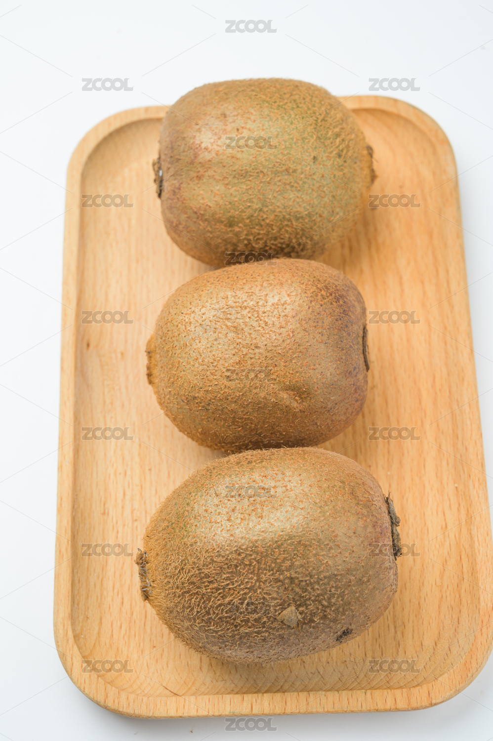 放在白色背景上木盘里切开的新鲜猕猴桃