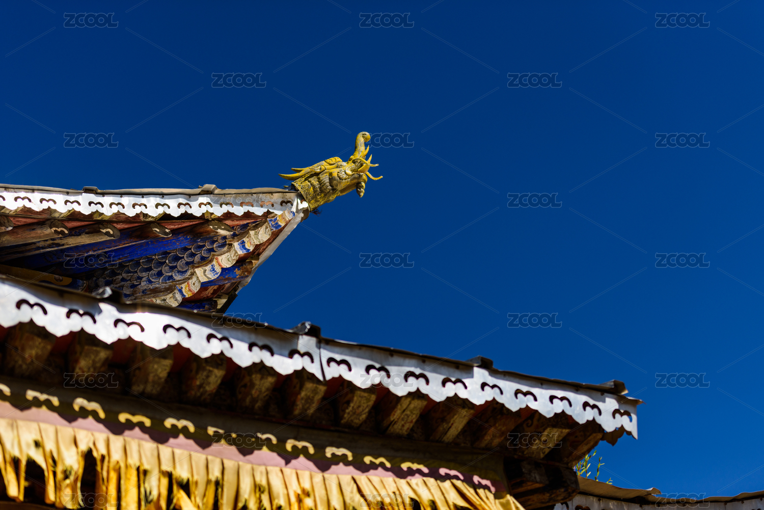中国西藏拉萨大昭寺建筑的龙型的飞檐