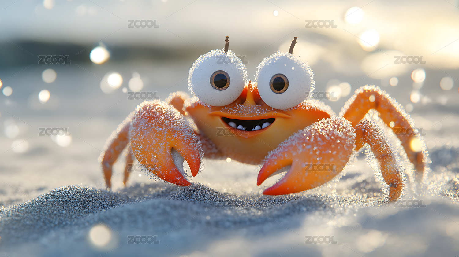 可爱,卡通,螃蟹,沙滩,阳光,沙子,海洋,大海,玩耍,迷人