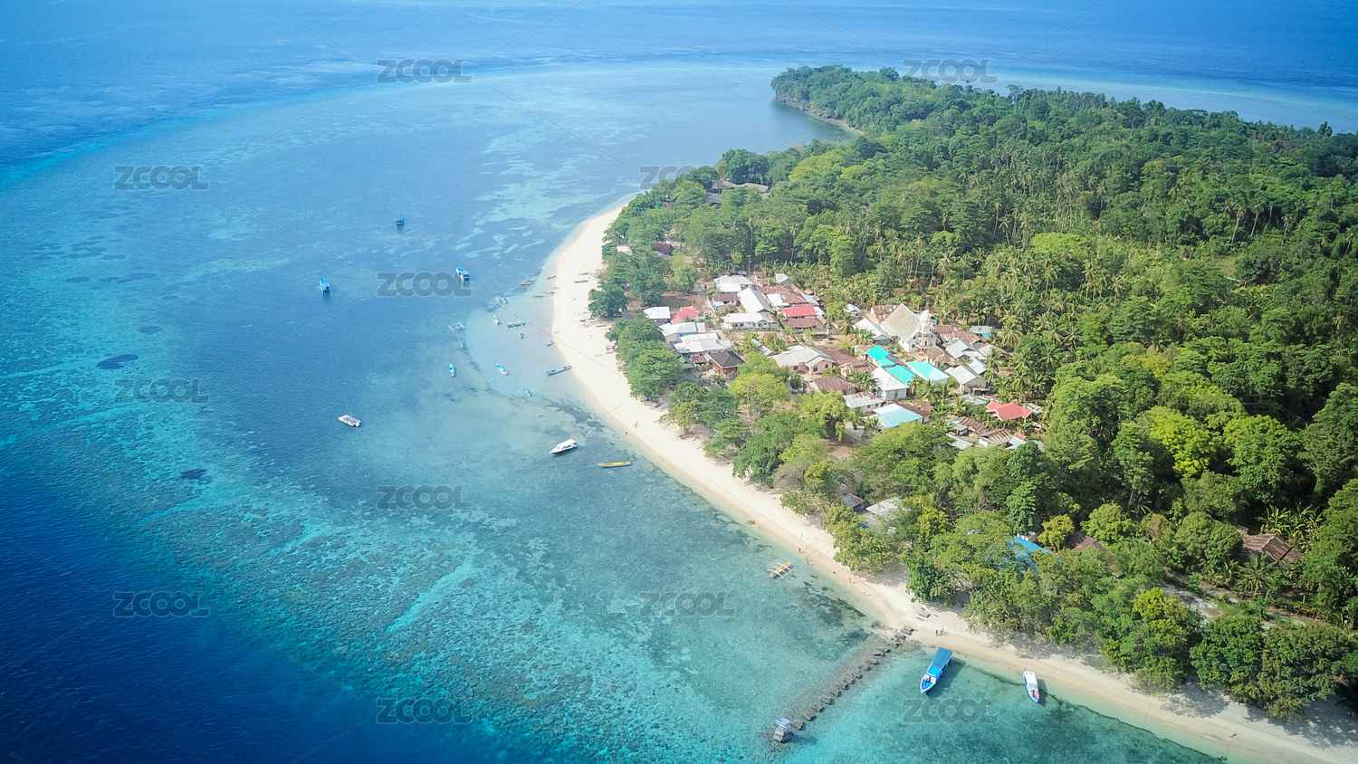 印尼Gili吉利群岛特拉旺岸海岛风光航拍