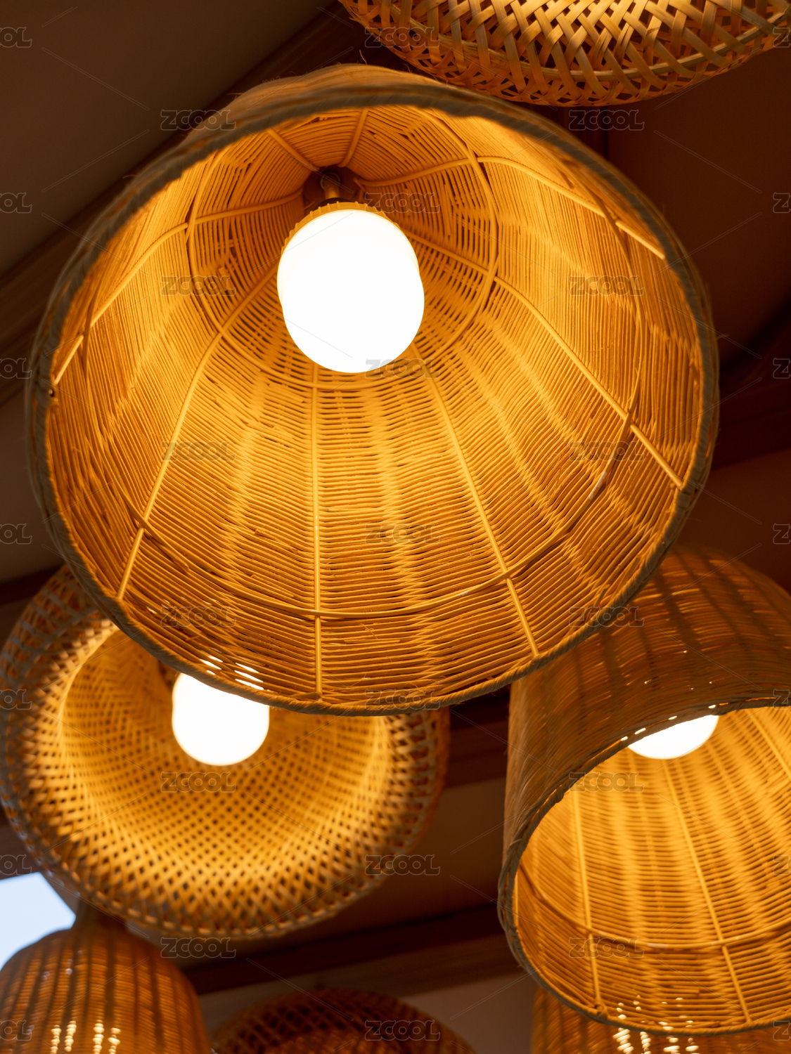 挂在房顶上的竹编灯罩