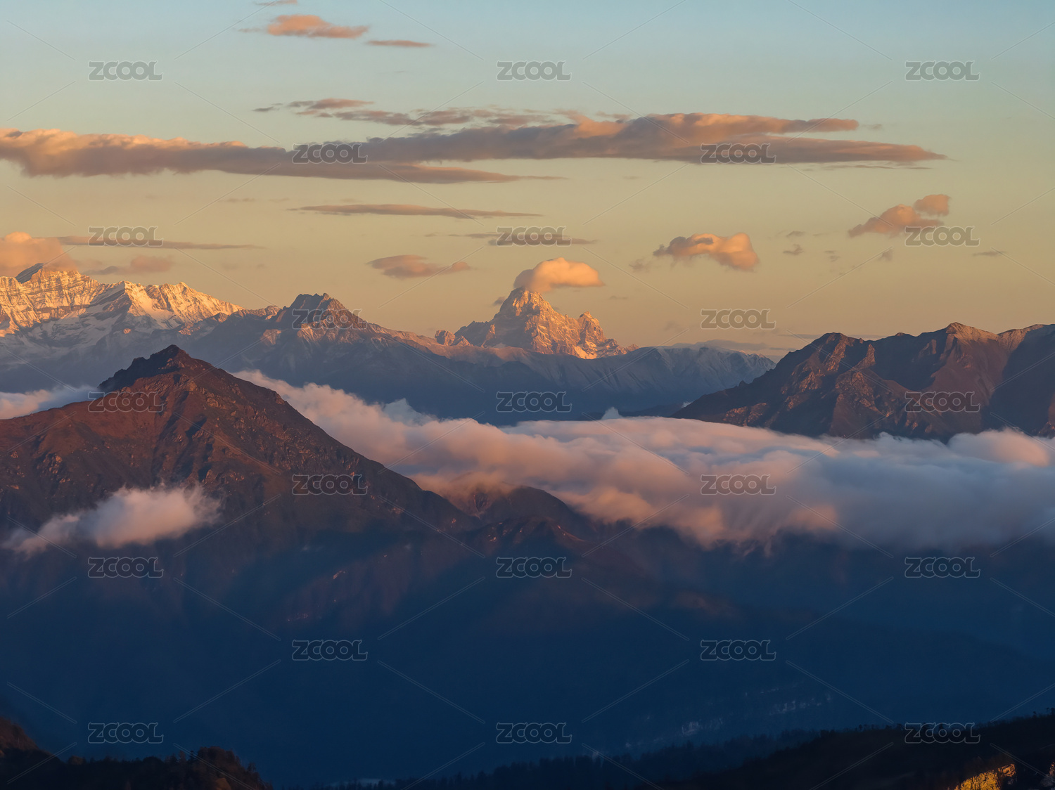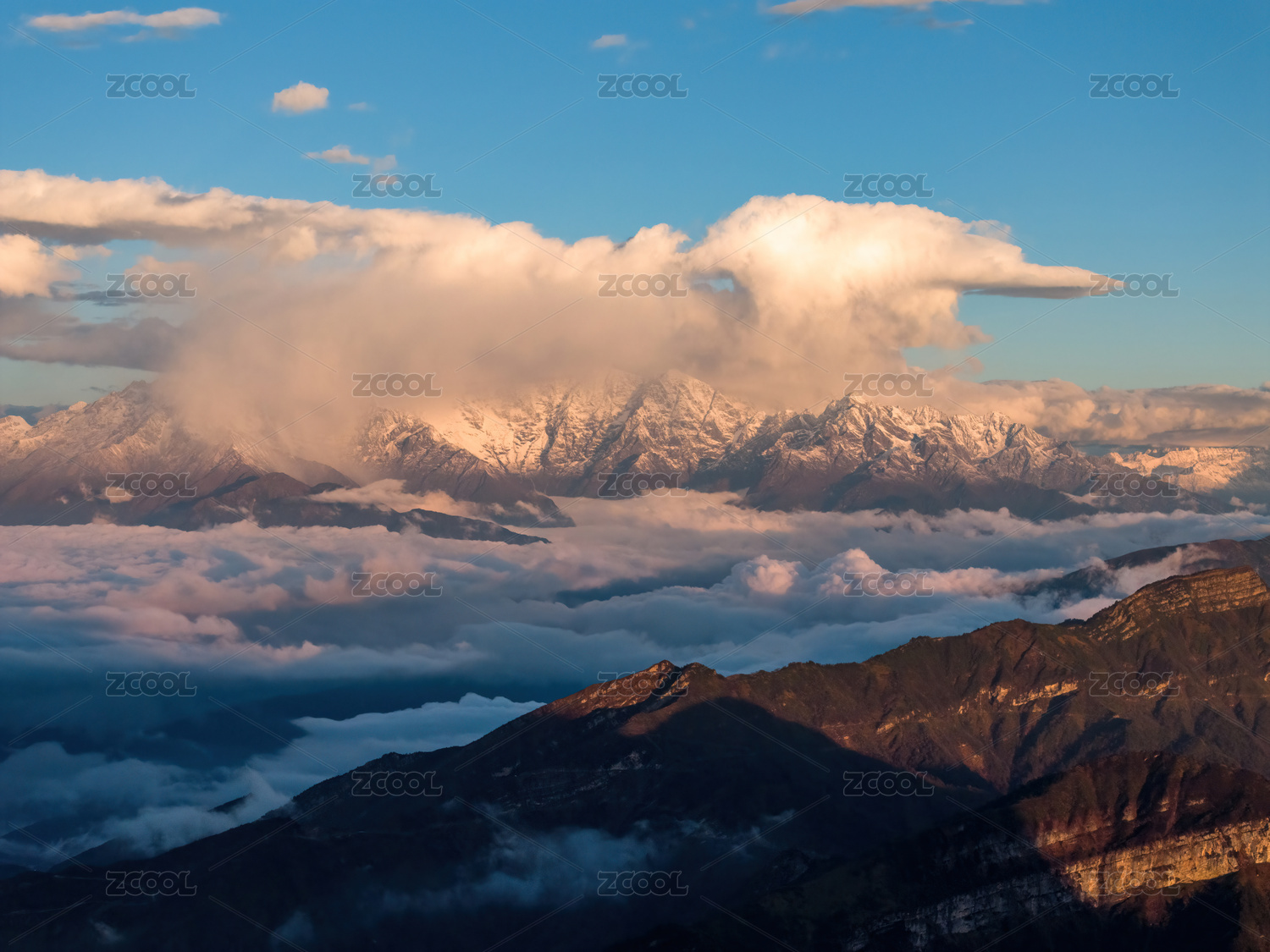 四川雅安牛背山云海云瀑贡嘎雪山高空航拍