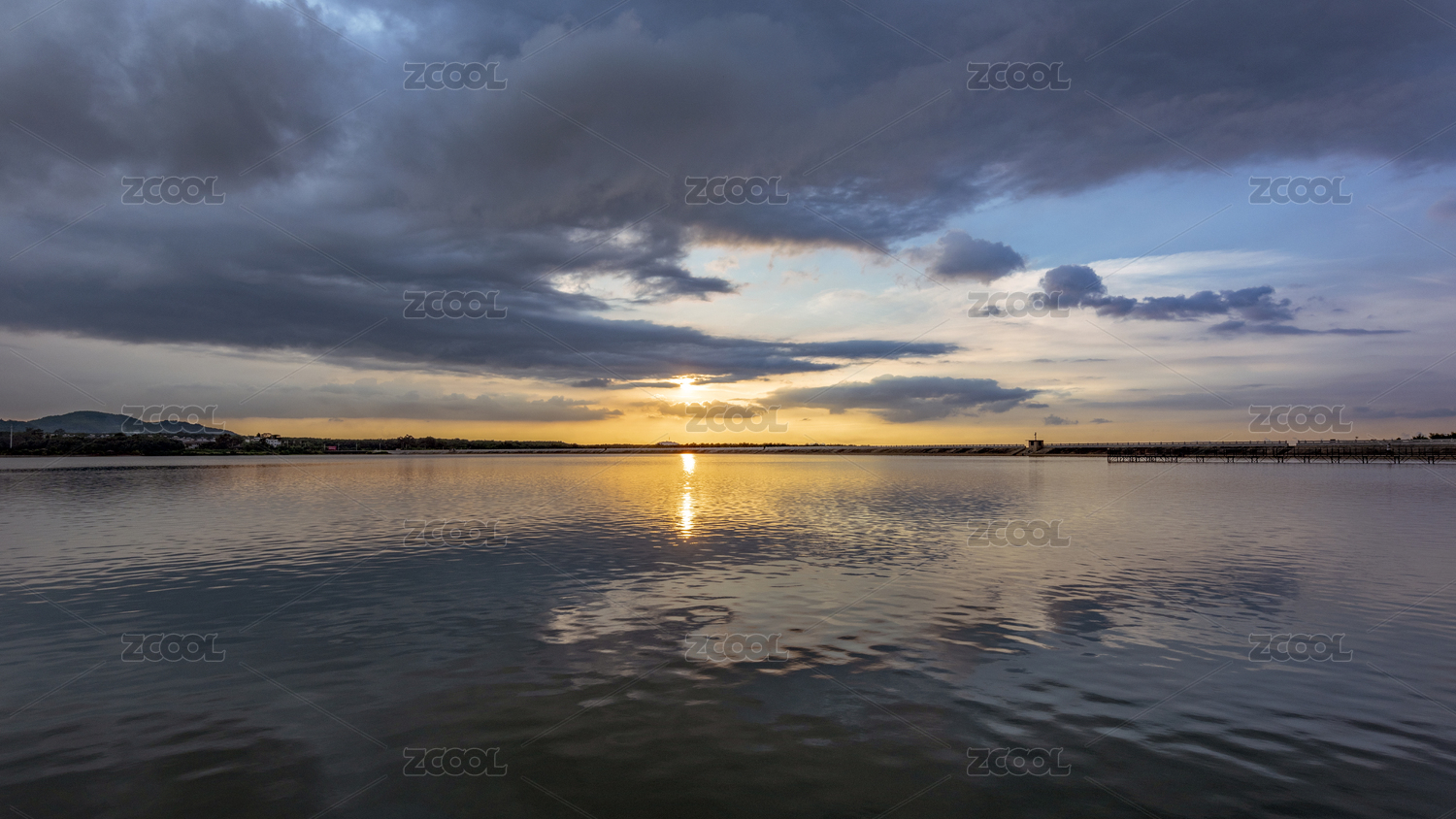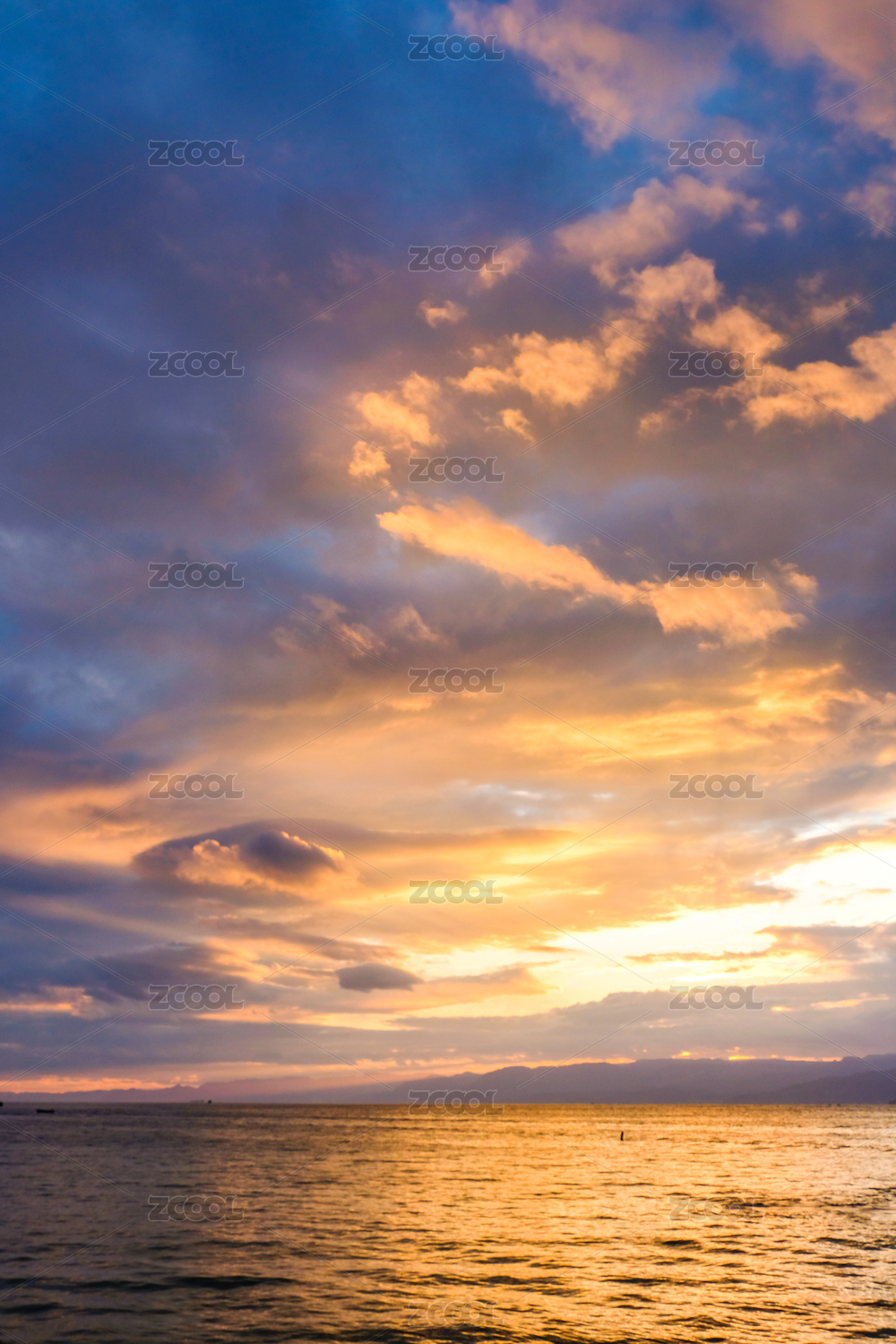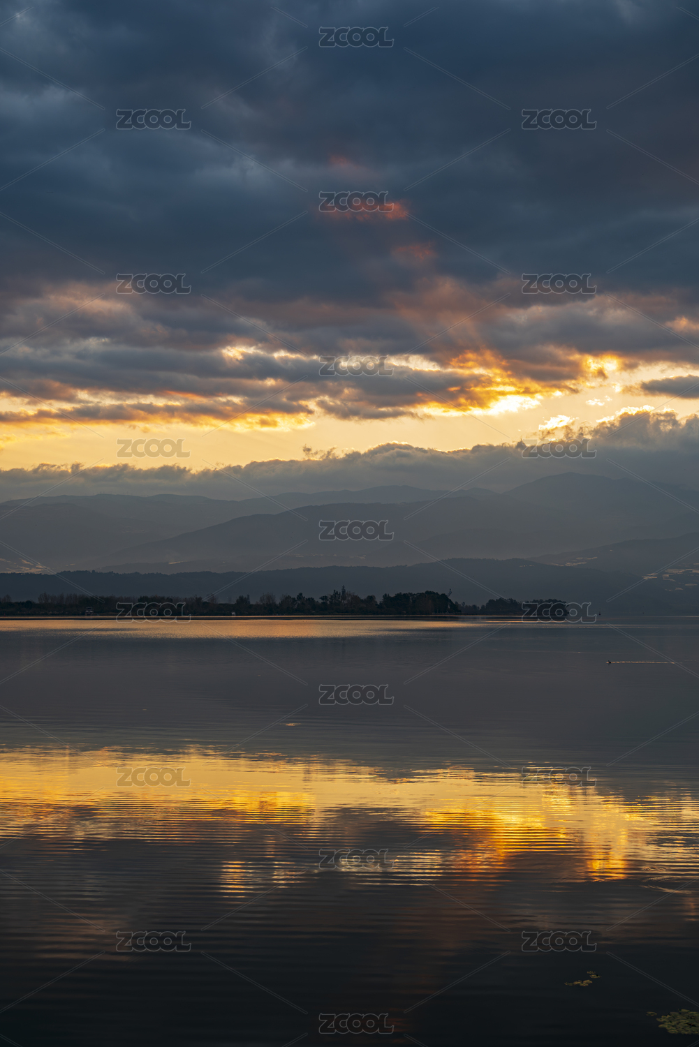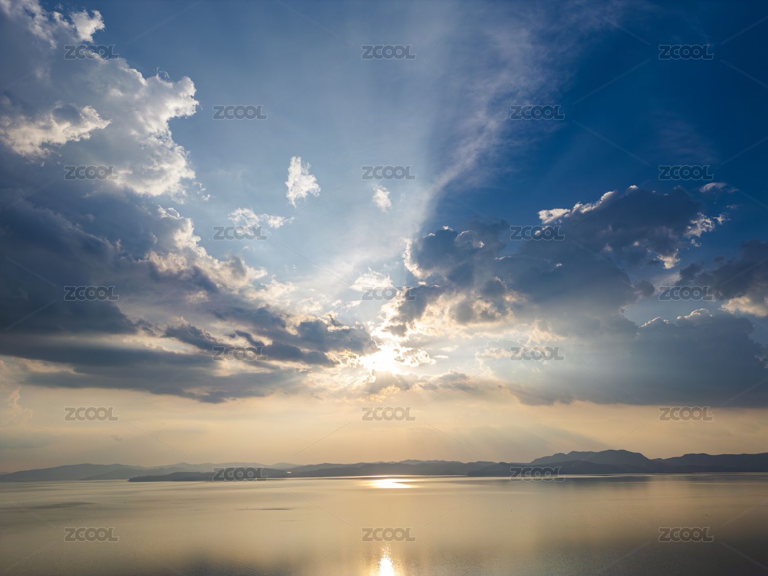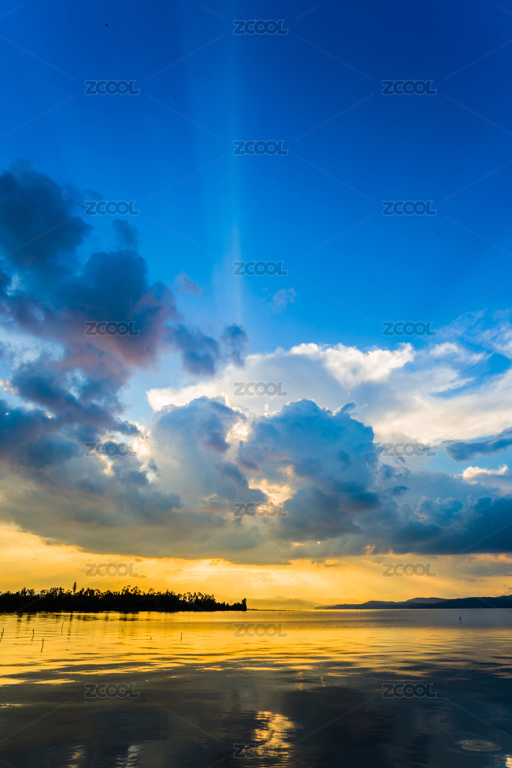 天空,云,反射,橙色,海洋,湖,水,丁达尔效应,邛海,风景