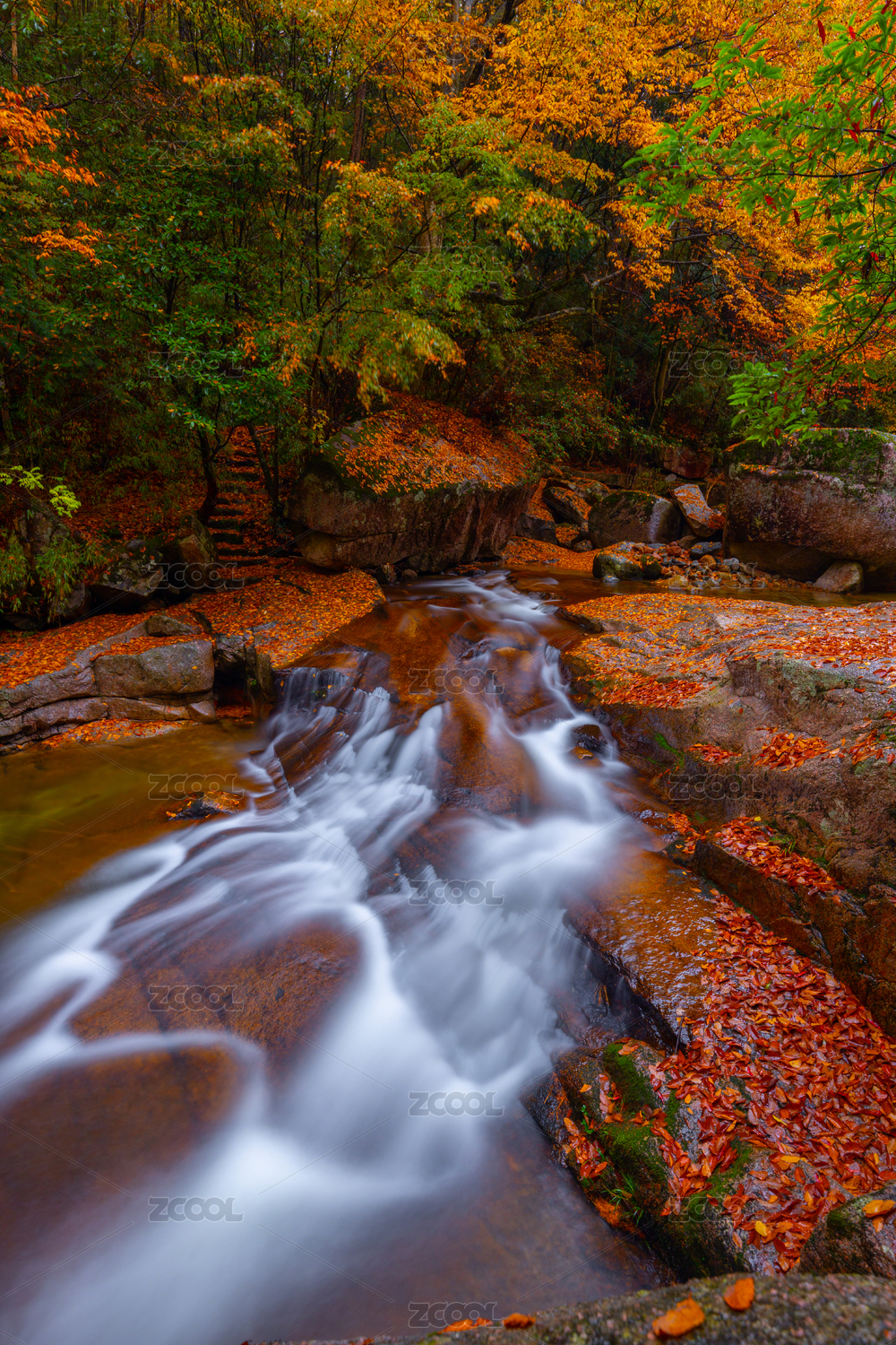 沈阳本溪老边沟,秋季枫树红叶溪流自然风光