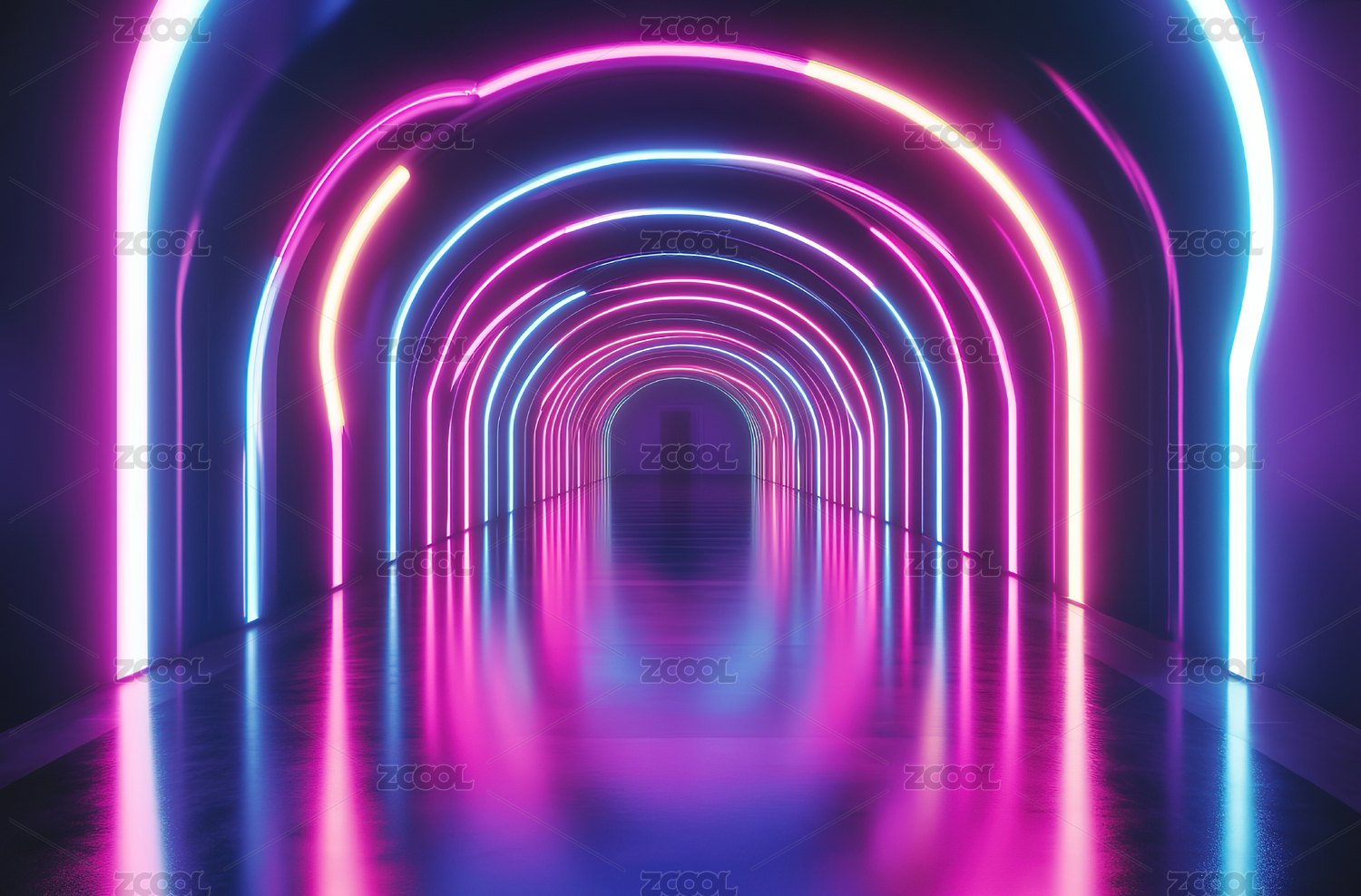 科技,霓虹灯,黑暗,走廊,紫色,未来,科幻,场景,光线,效果