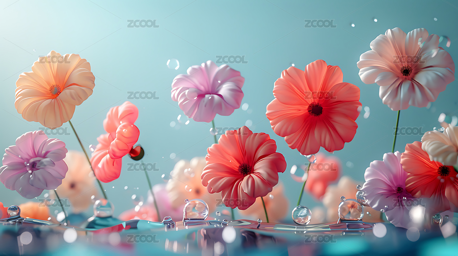 3d膨胀充气感花朵背景
