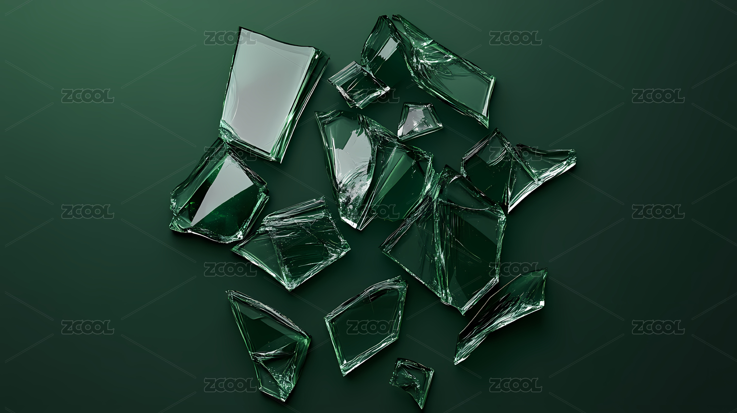 视觉,抽象,创意,艺术,反射,设计,破碎,玻璃,碎片,绿色