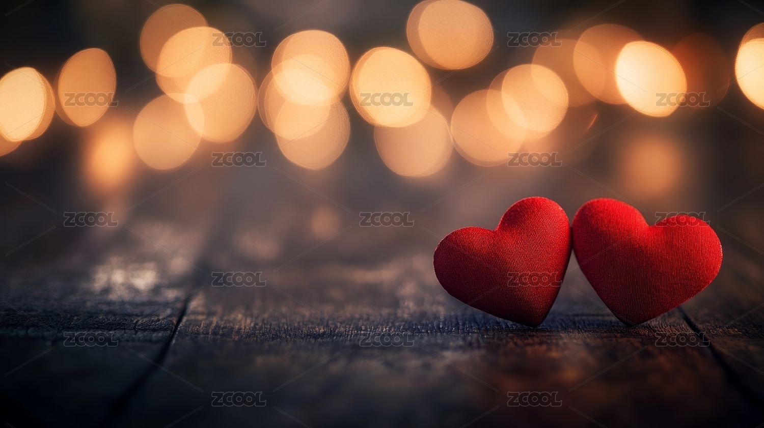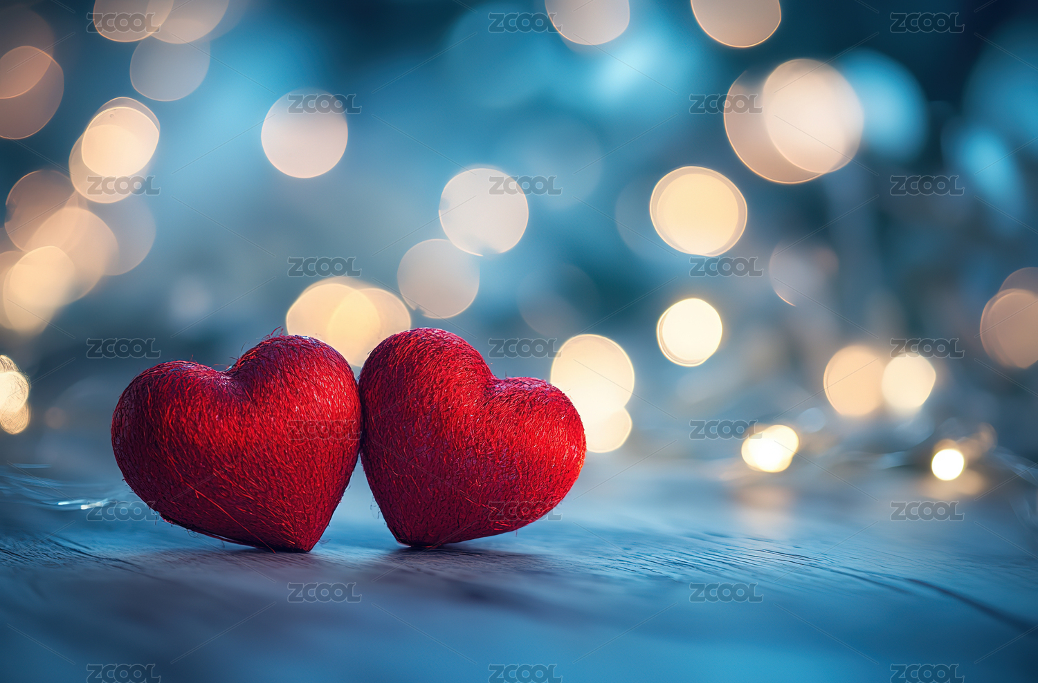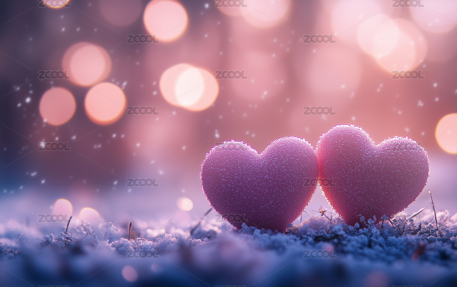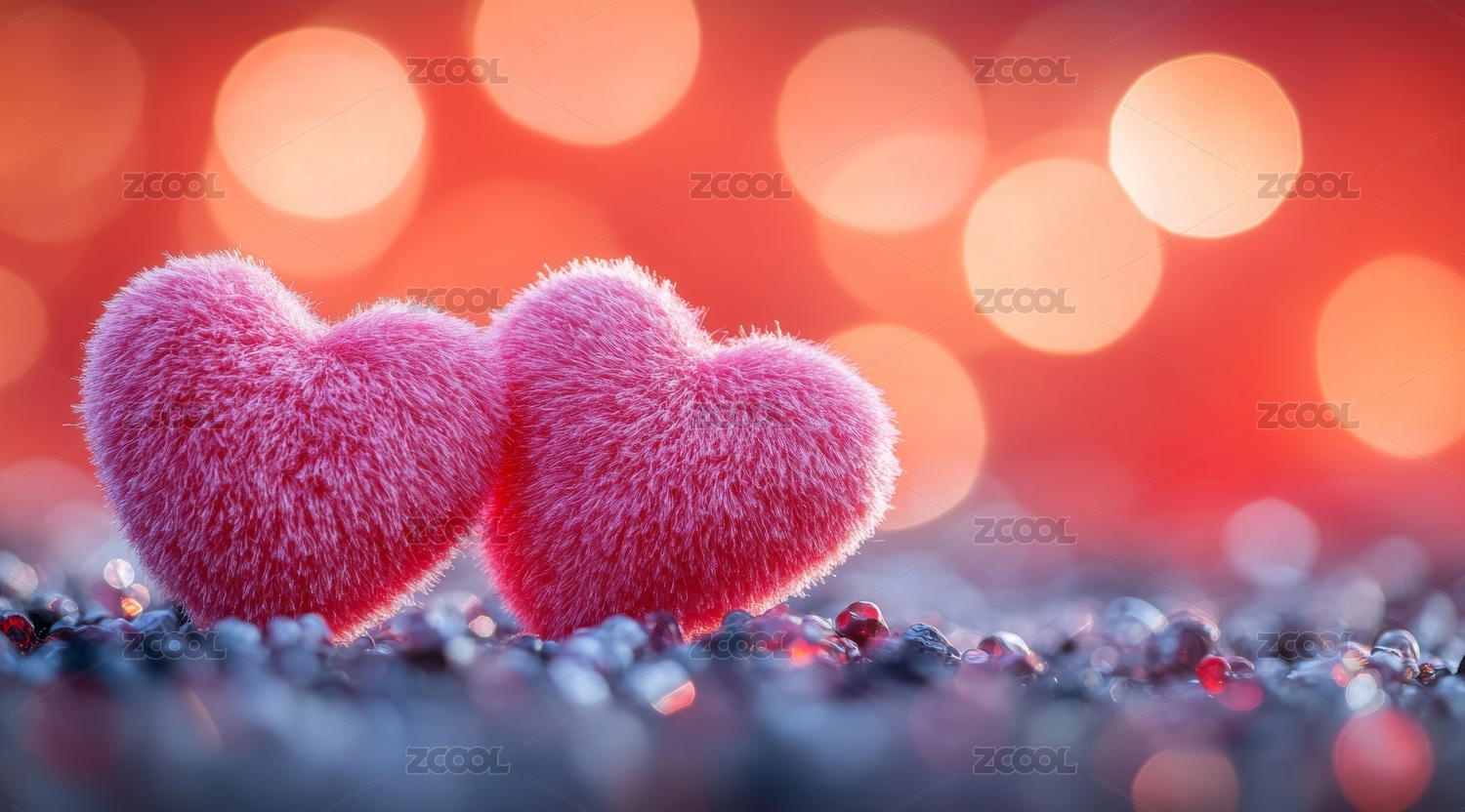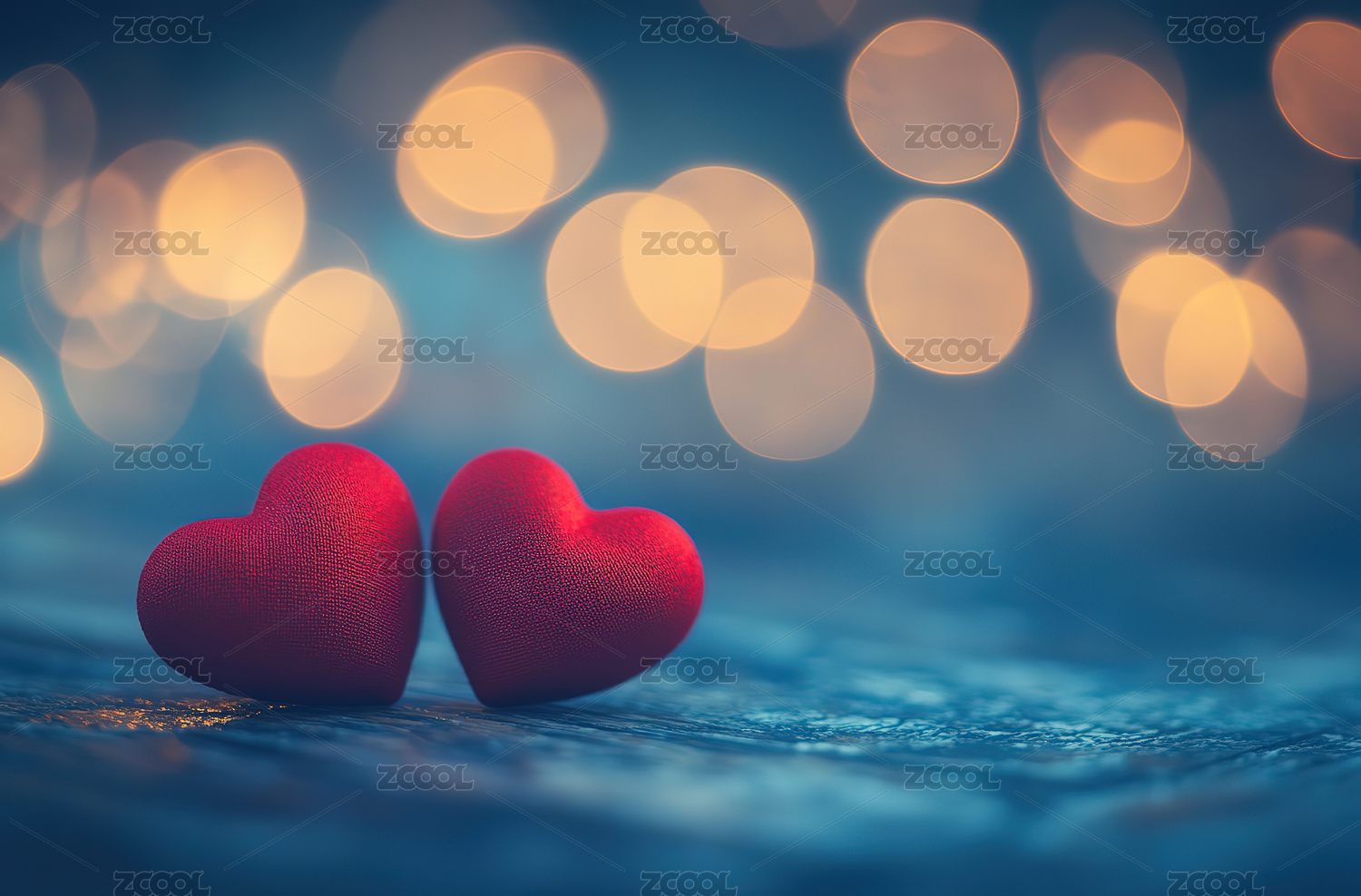 两颗红色闪粉心形并排置于银色闪亮背景上