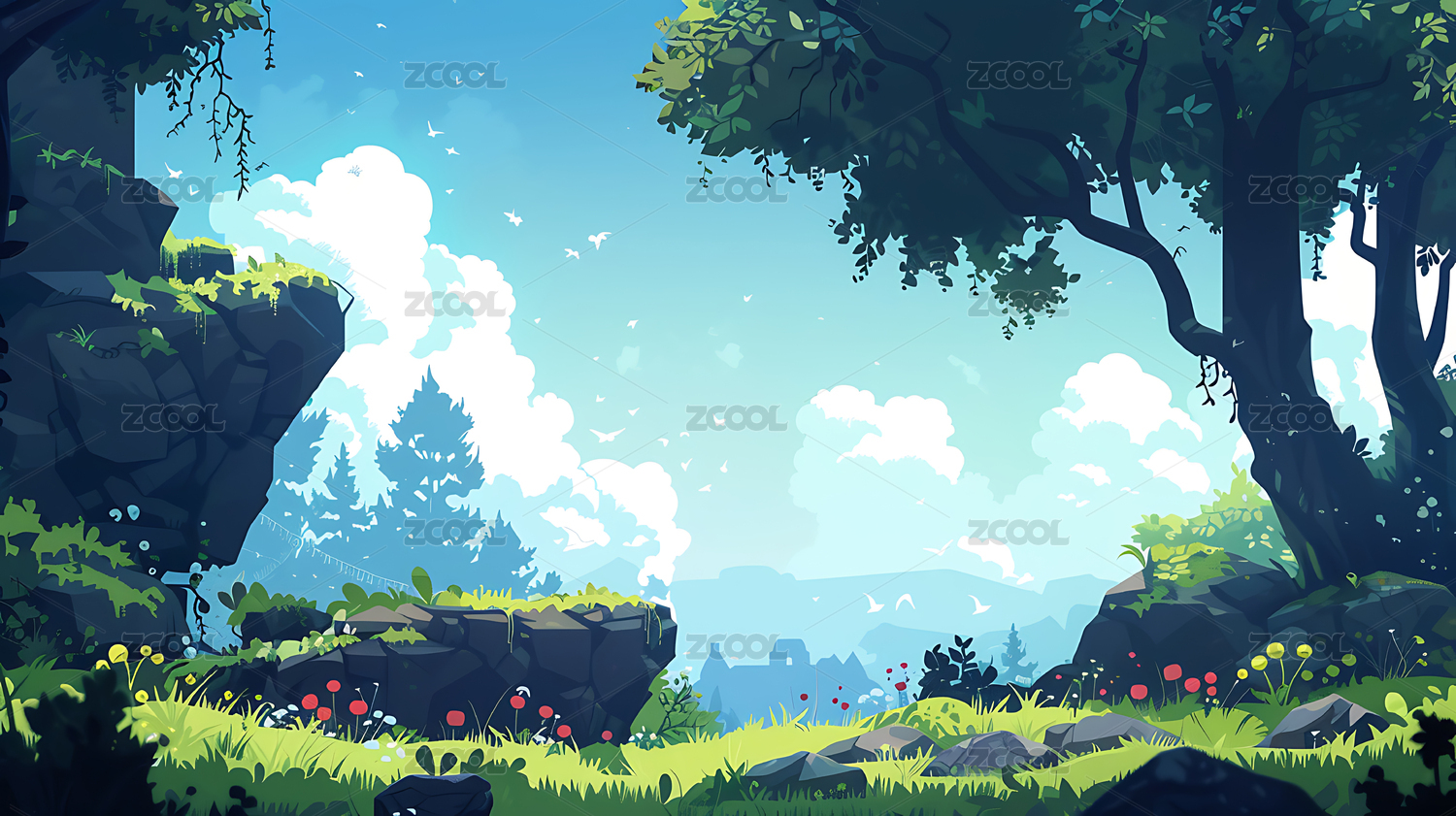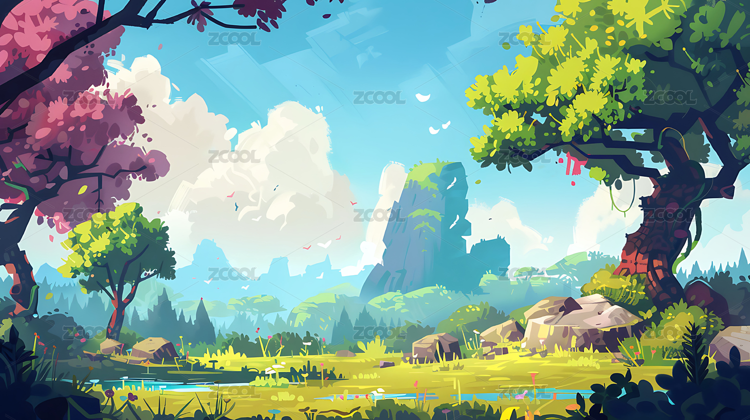 2d卡通游戏背景插画