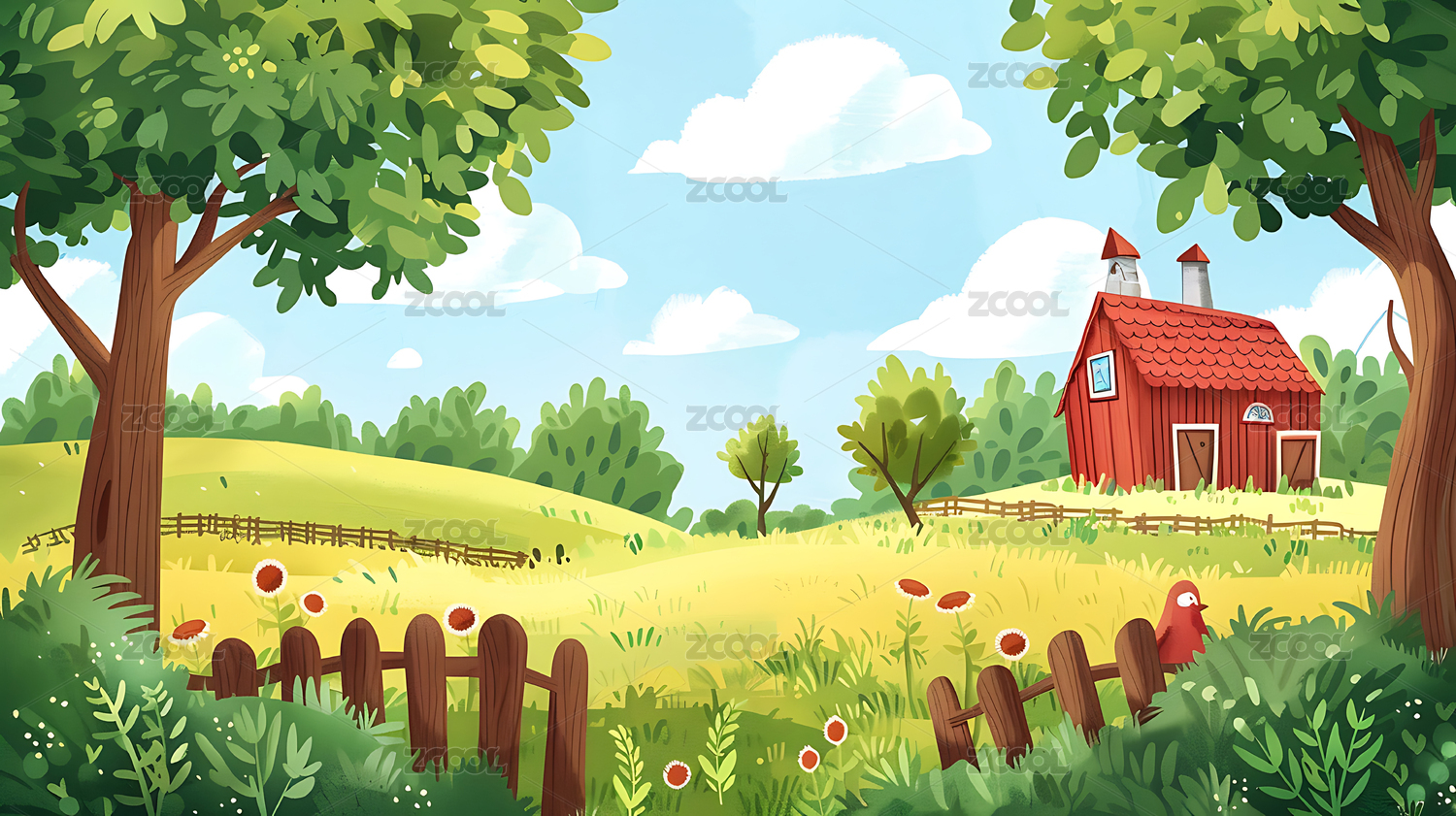 乡村,插画,绘本,风景,户外,自然,种植,园艺,景色,田野