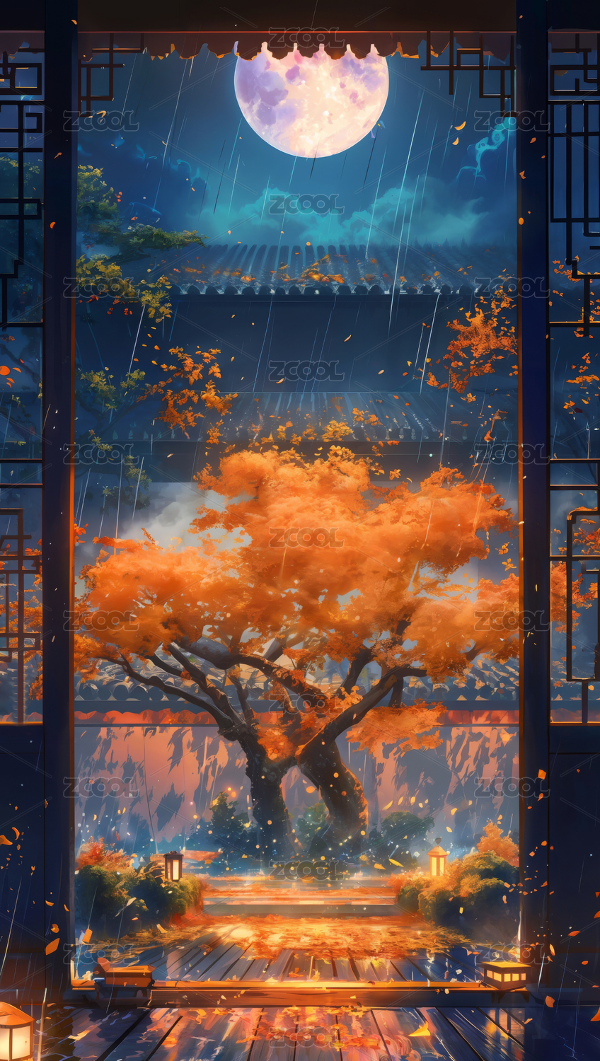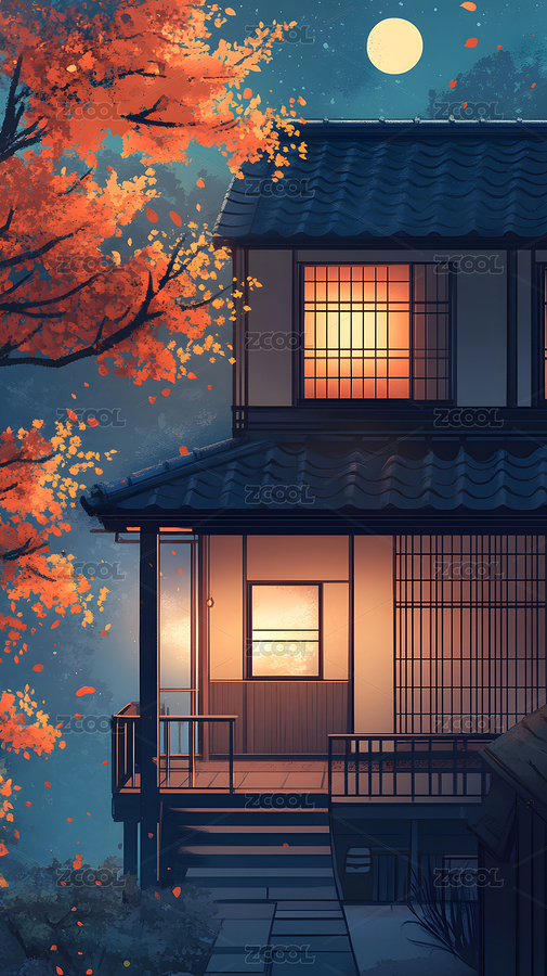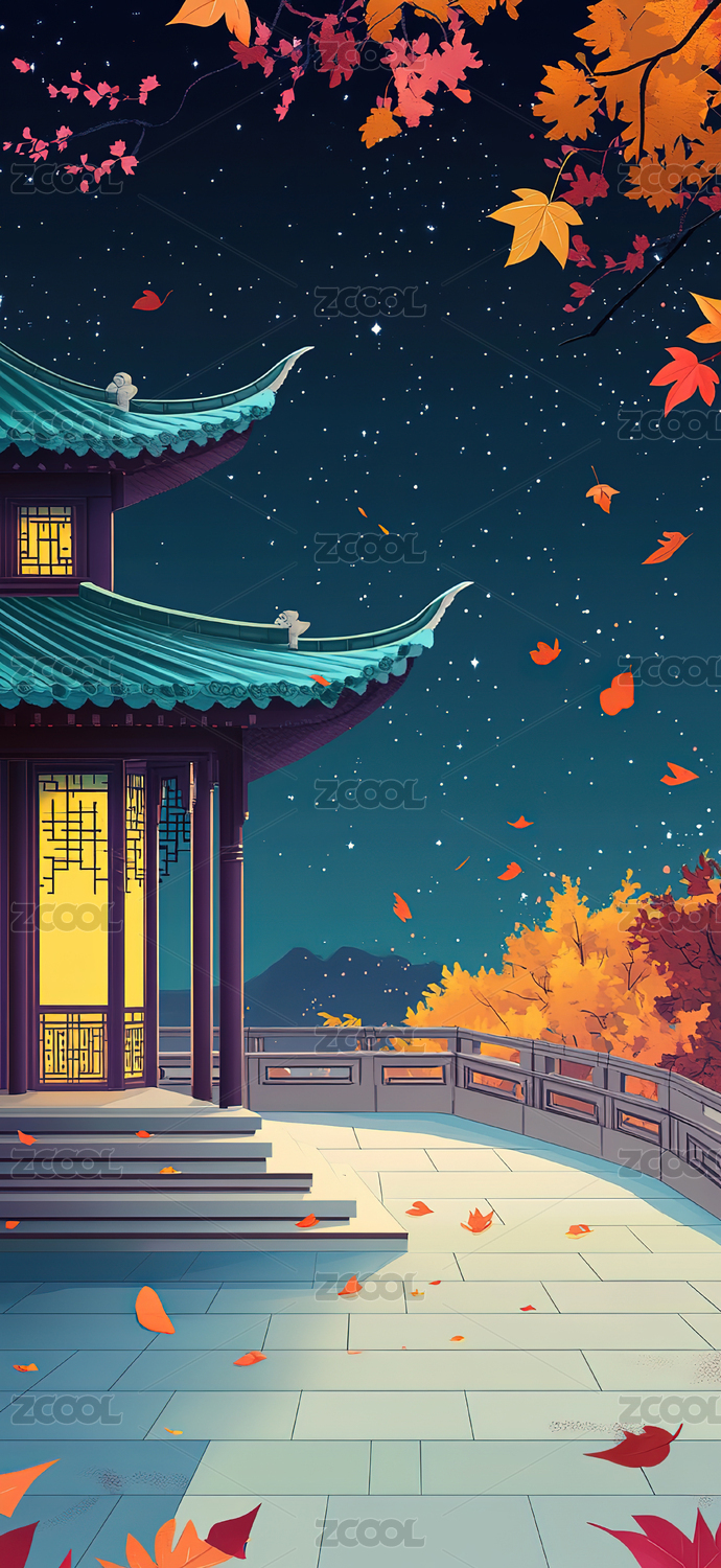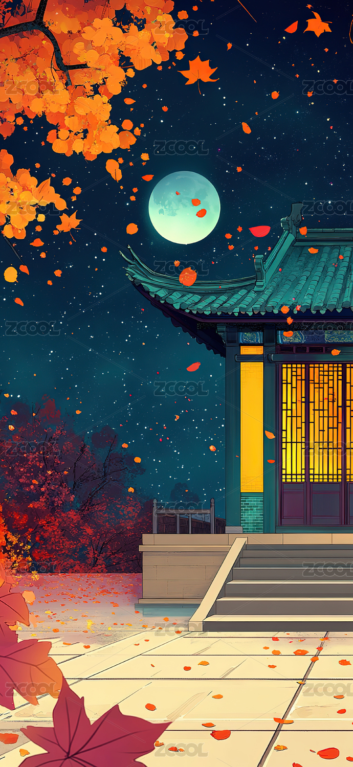 月夜秋景东方风格