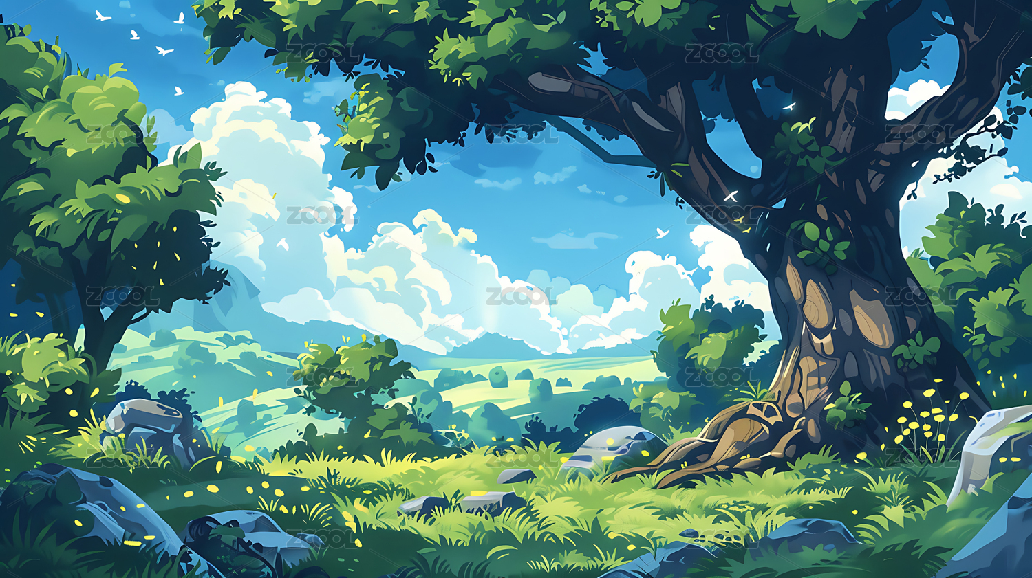 插画,卡通,游戏,动画,手游,背景,风景,自然,植物,场景