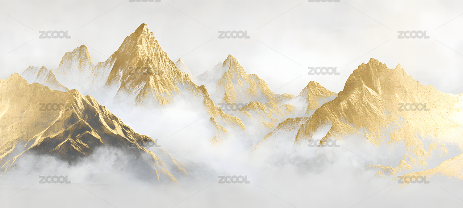 金色山峰水墨画背景