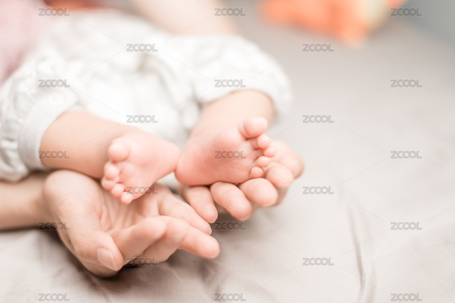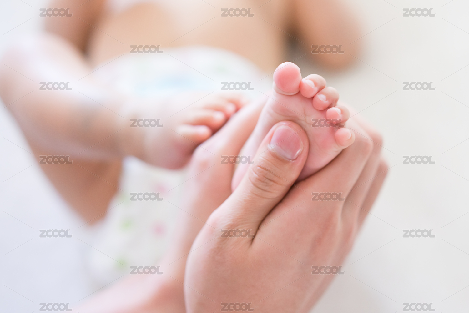 妈妈用手托住婴儿胖嘟嘟的小脚丫