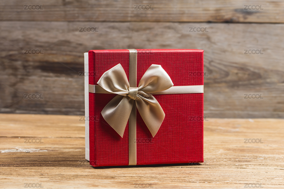 一个礼物盒在木纹背景上