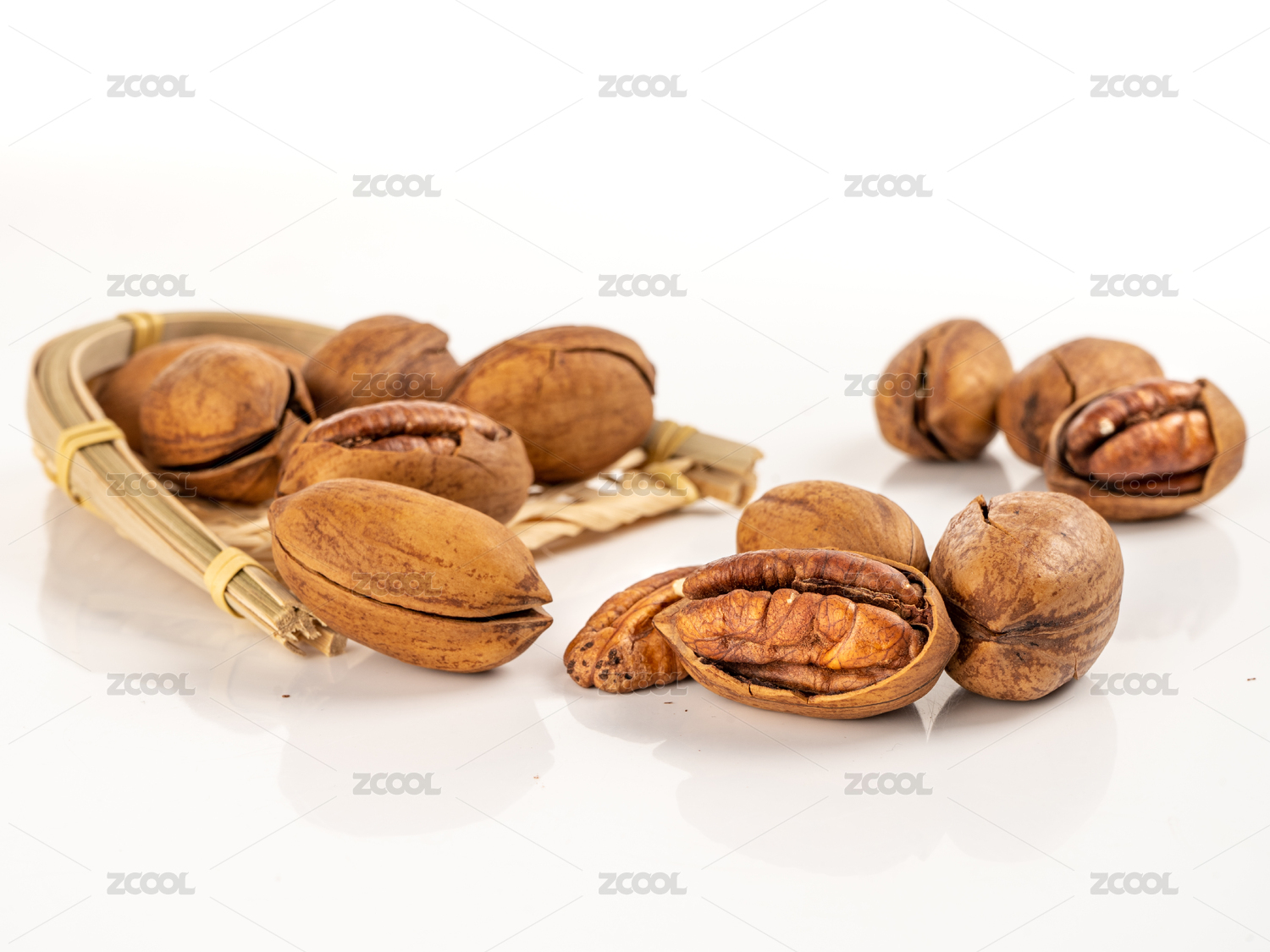 放在白色背景上的碧根果