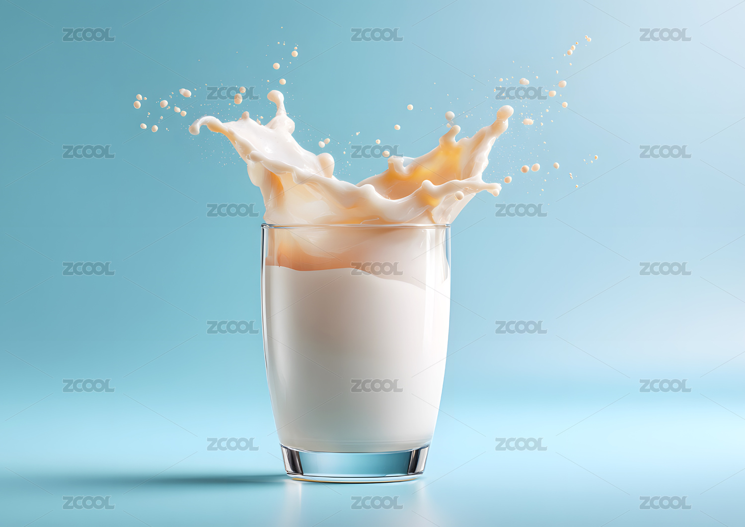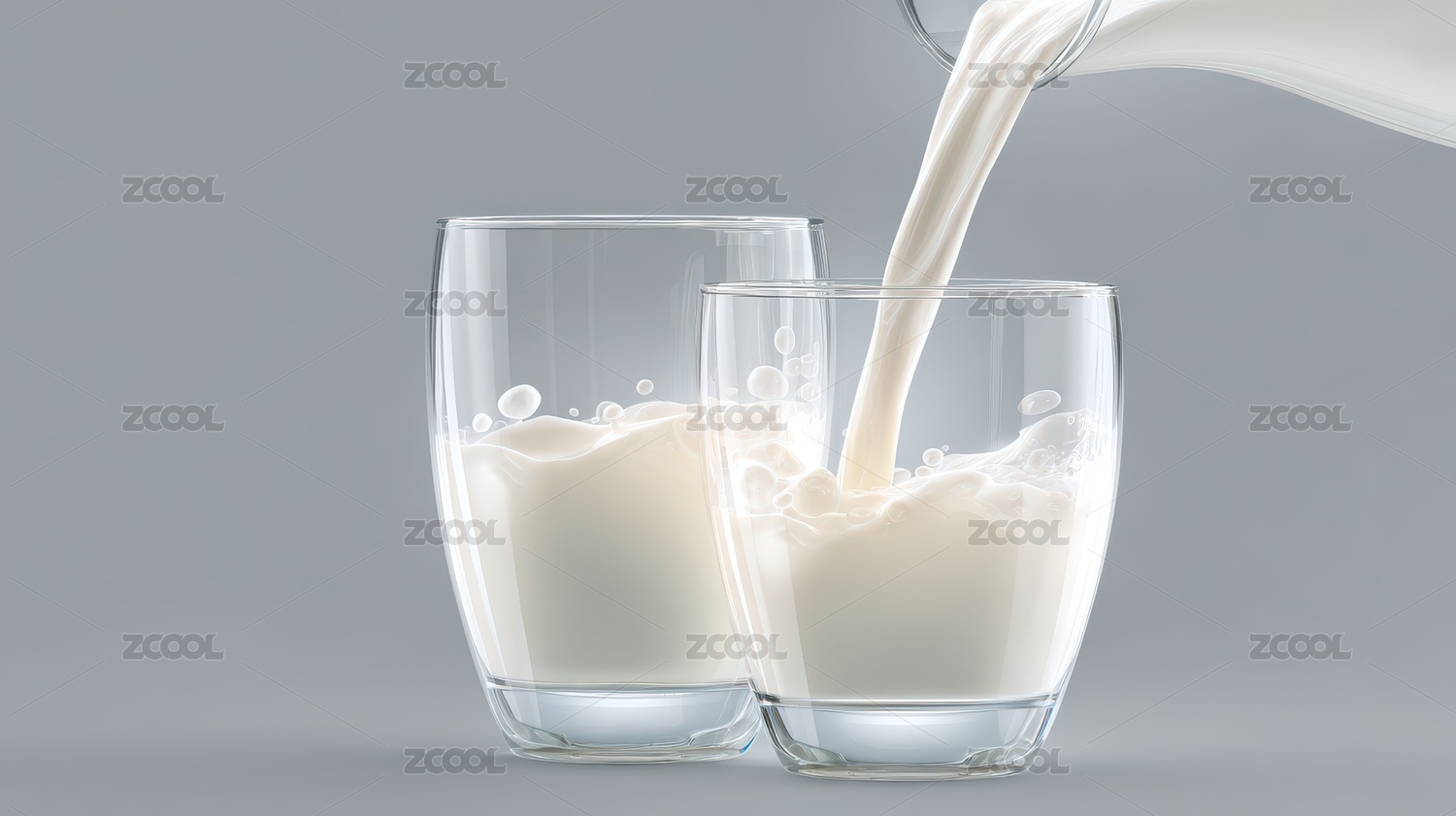将牛奶倒入玻璃杯中并撒上牛奶图片