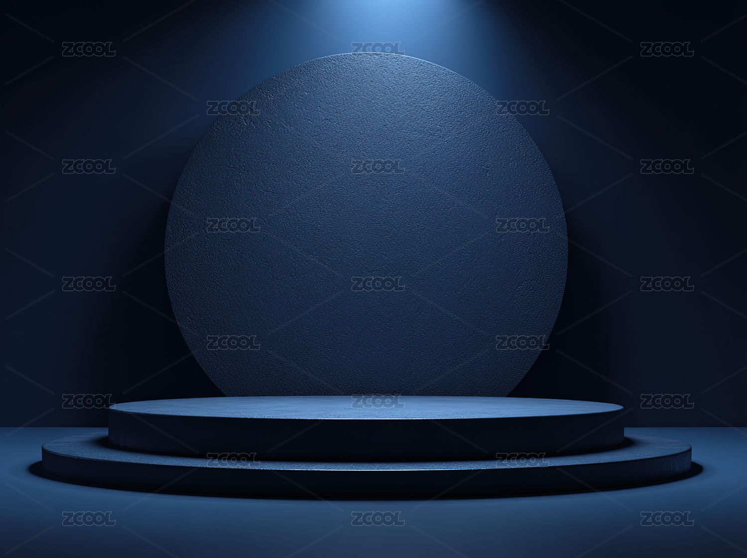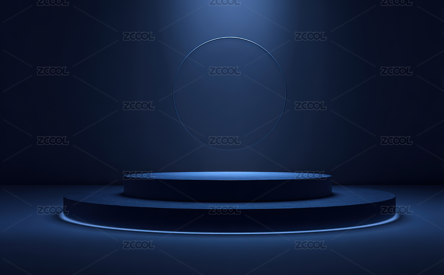 产品展台,圆形,蓝色,光,聚光灯,极简,暗色,深蓝色,底座,现代