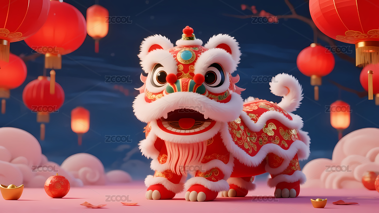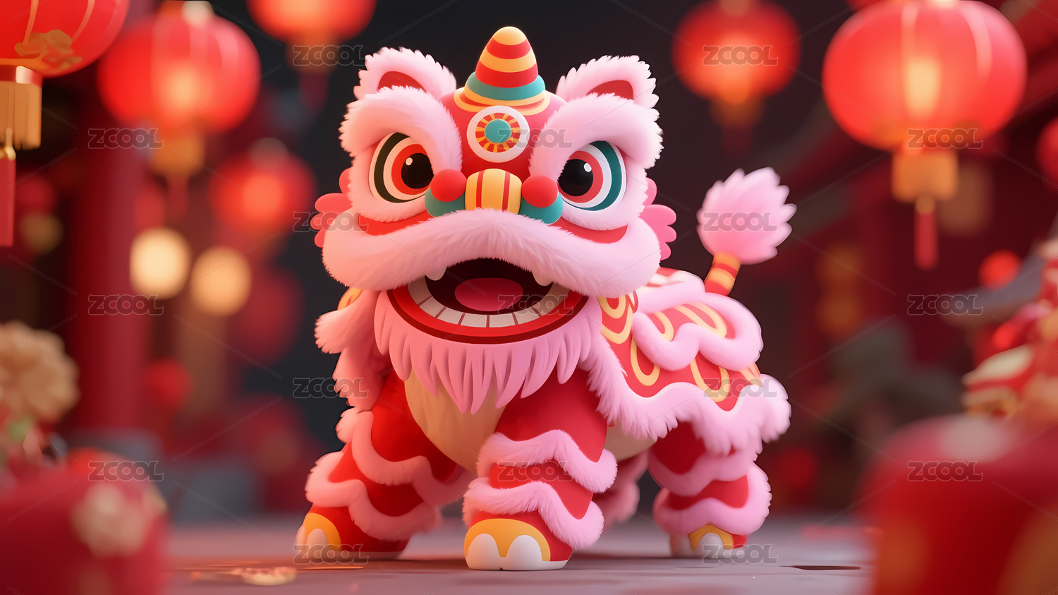 艺术,创意,插画,插图,背景,壁纸,装饰画,节日,新年,舞狮